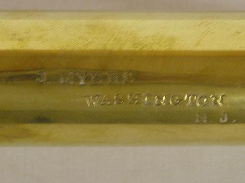 11 1/2" BRASS ENGINEERS TORCH-STAMPED J. MYERS WASHINGTON NJ - MISSING CAP, OVERALL GOOD CONDITION;