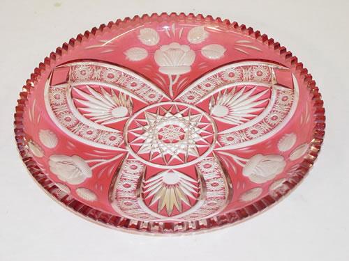 11 1/2" CRANBERRY CUT TO CLEAR ROUND CHARGER, UNMARKED - MINOR SCRATCHES