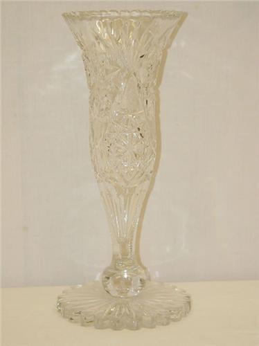 11 1/2" CUT GLASS SCALLOP FOOTED TRUMPET VASE- UNSIGNED - MINOR SCRATCHES