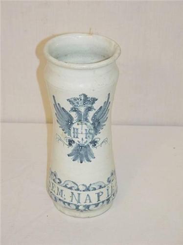 11 1/2" FRENCH FAIENCE TYPE VASE W/ EAGLE CREST "SEM, NAPLI" IN BLUE;