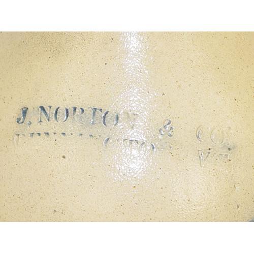 11 1/2" J. NORTON DECORATED 1 GAL. STONEWARE JUG- MARKED J. NORTON & CO. BENNINGTON VT W/ COBALT BLUEBIRD ON BRANCH - VERY MINOR IMPERFECTIONS;