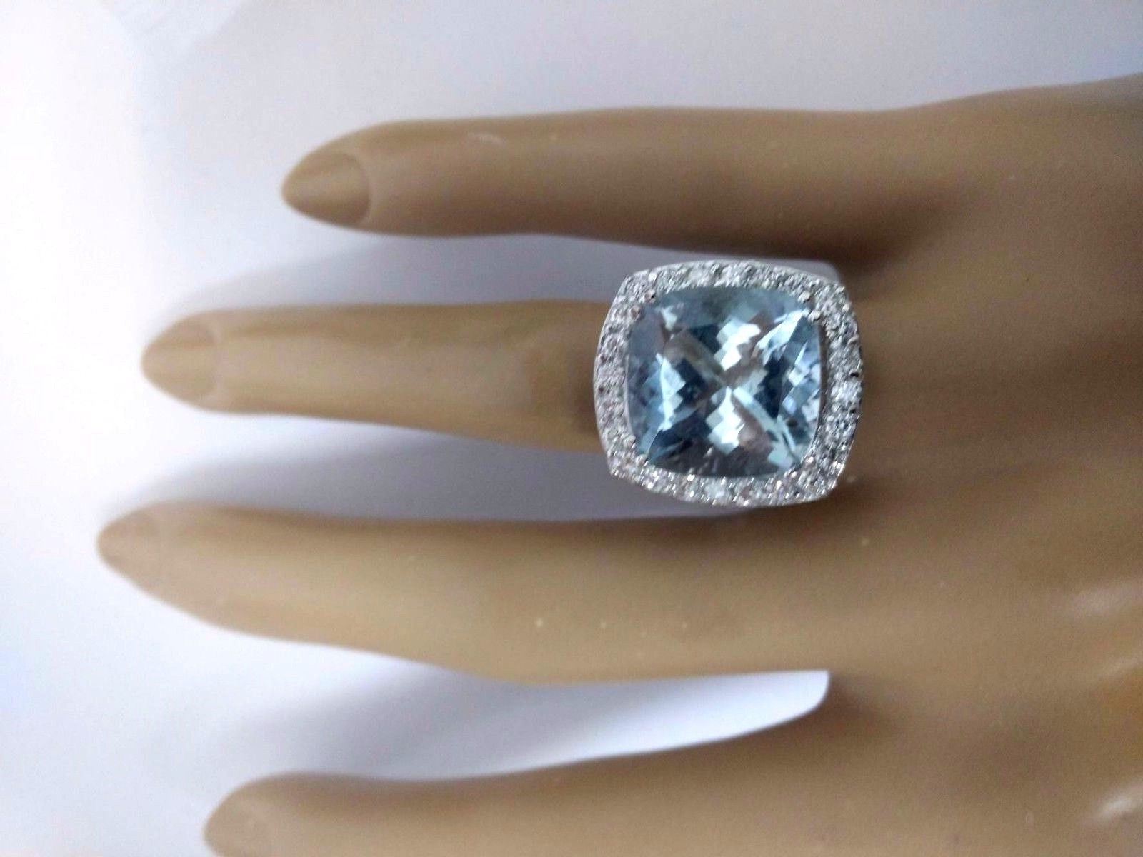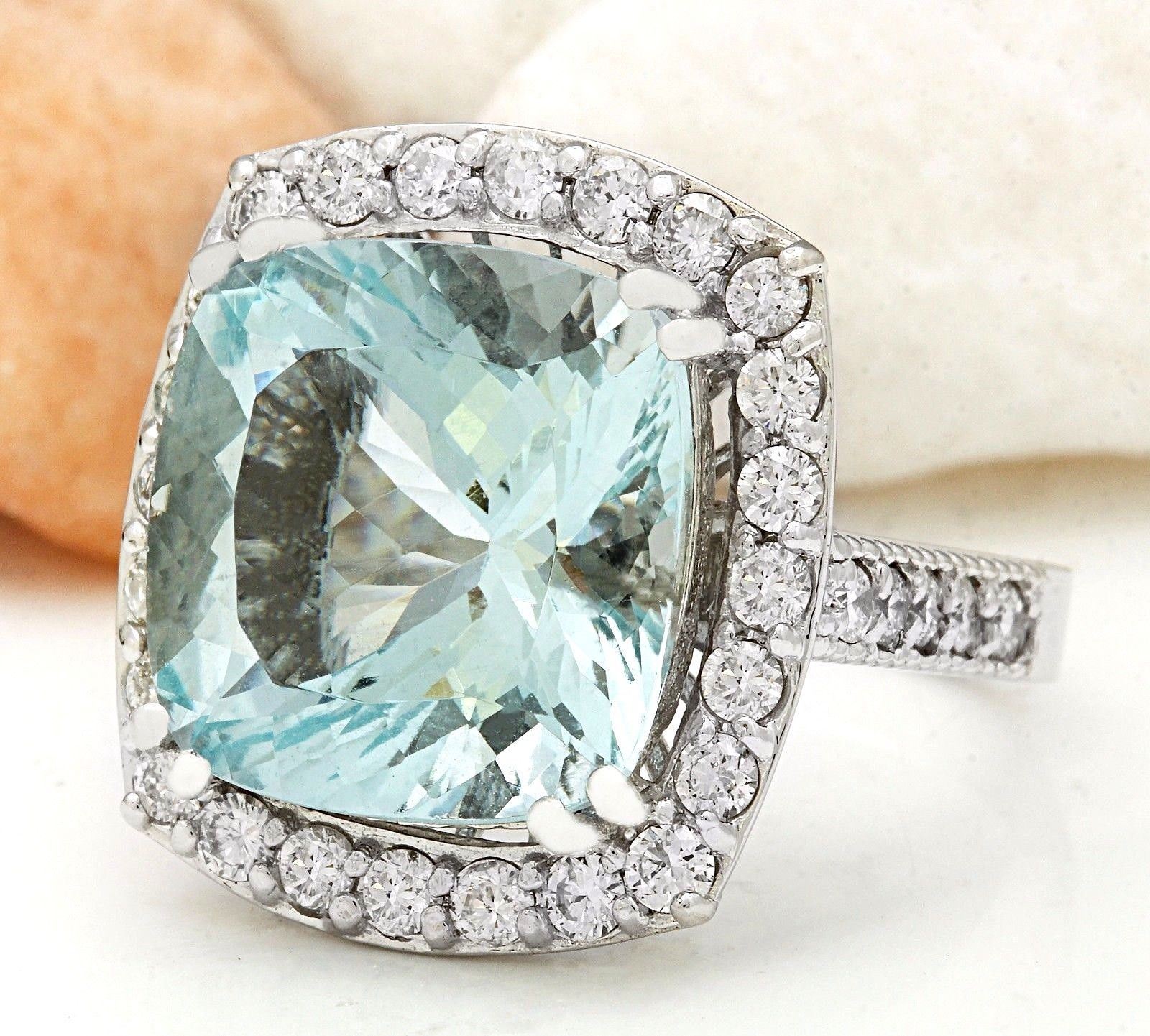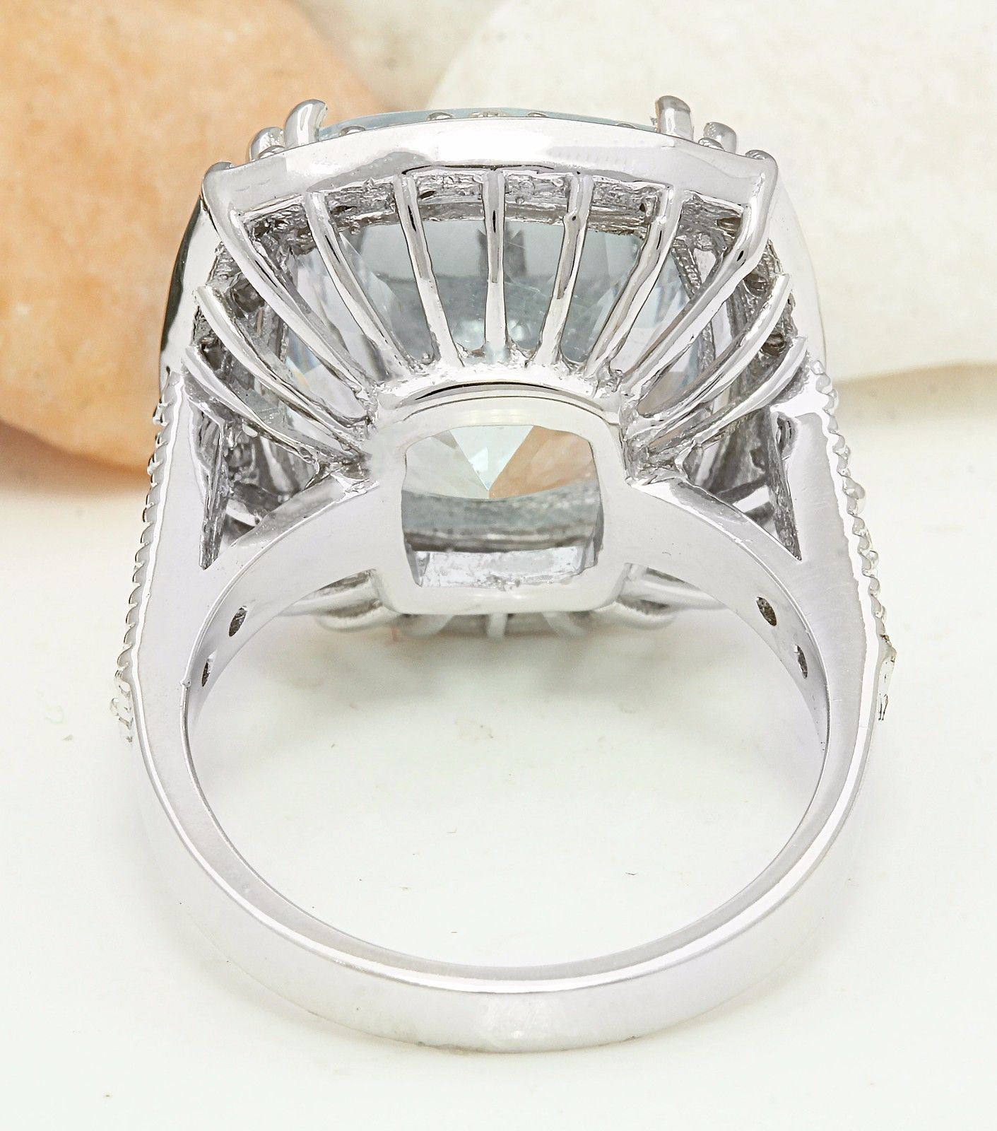 11.10 Carat Natural Aquamarine 18K Solid White Gold Diamond Ring