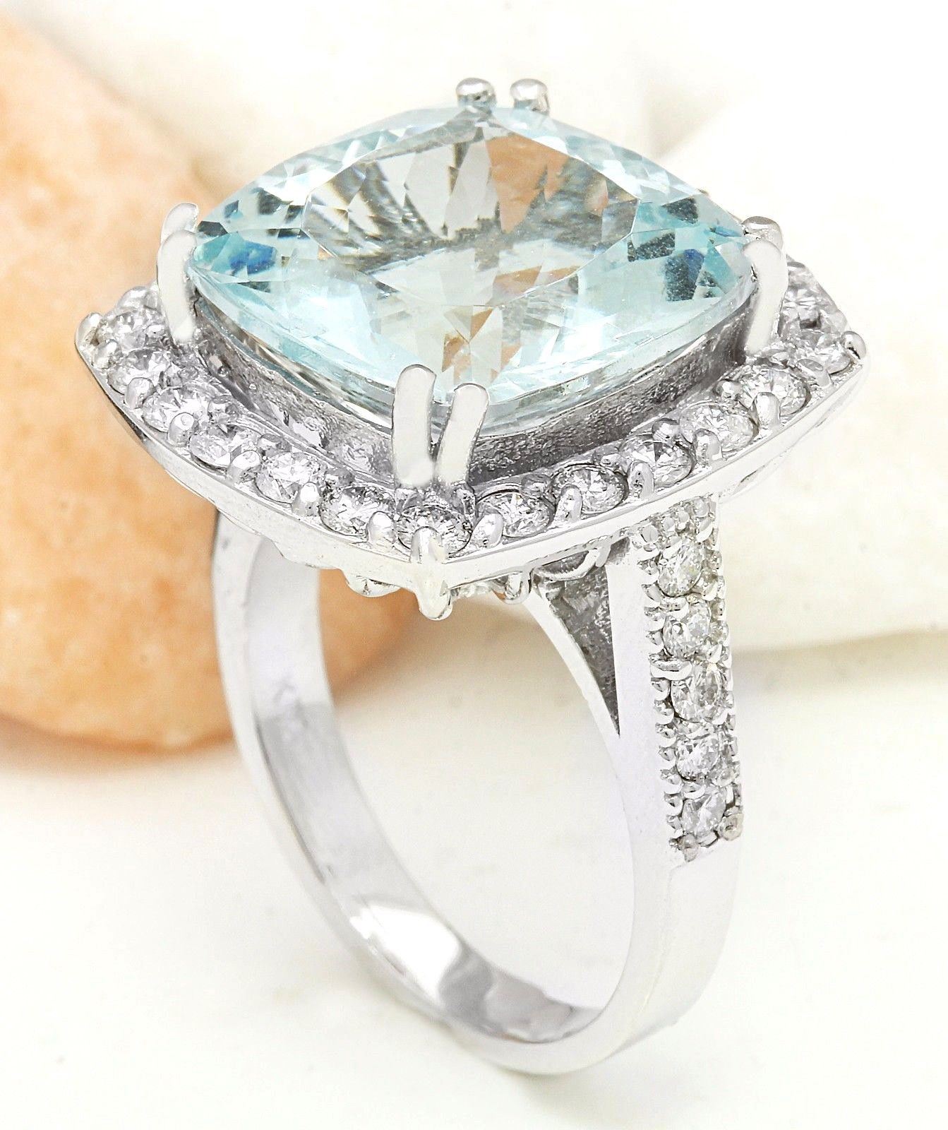 11.10 CTW Natural Aquamarine 18K Solid White Gold Diamond Ring