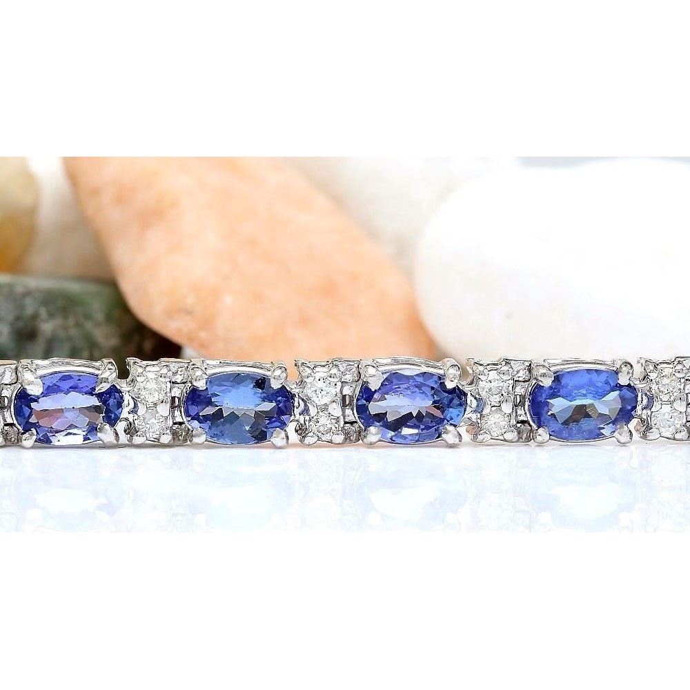 11.10 CTW Natural Tanzanite 14K Solid White Gold Diamond Bracelet