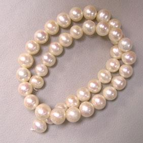 WHITE FRESHWATER PEARL STRAND. EACH PEARL MEASURES 11-10 MM. LENGTH: 16 INCHES