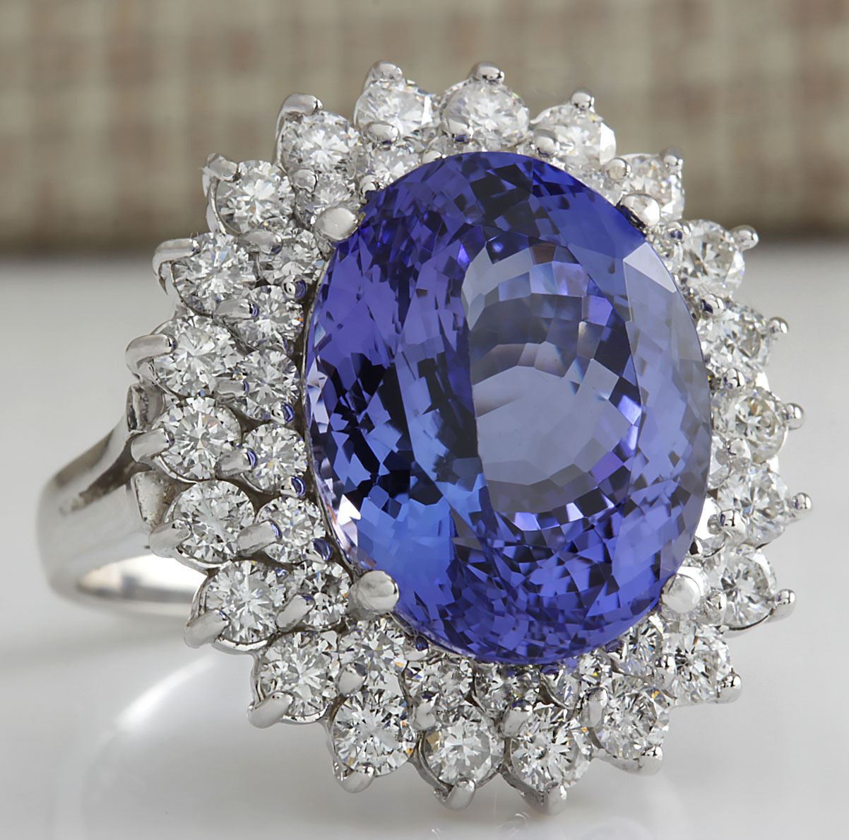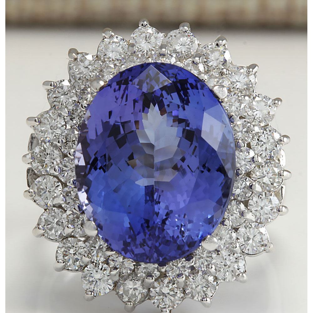 11.11 CTW Natural Tanzanite And Diamond Ring 18K Solid White Gold