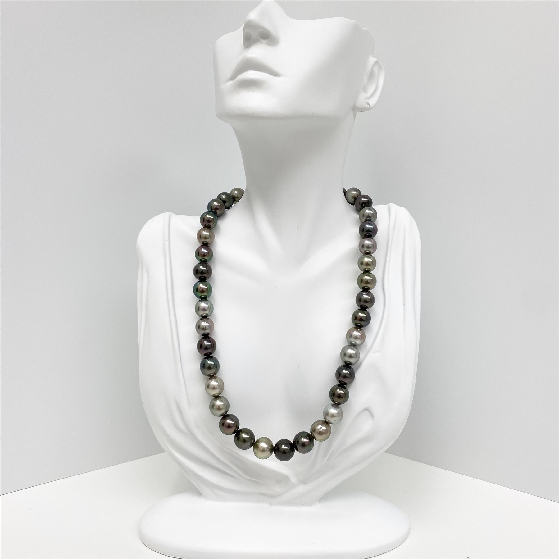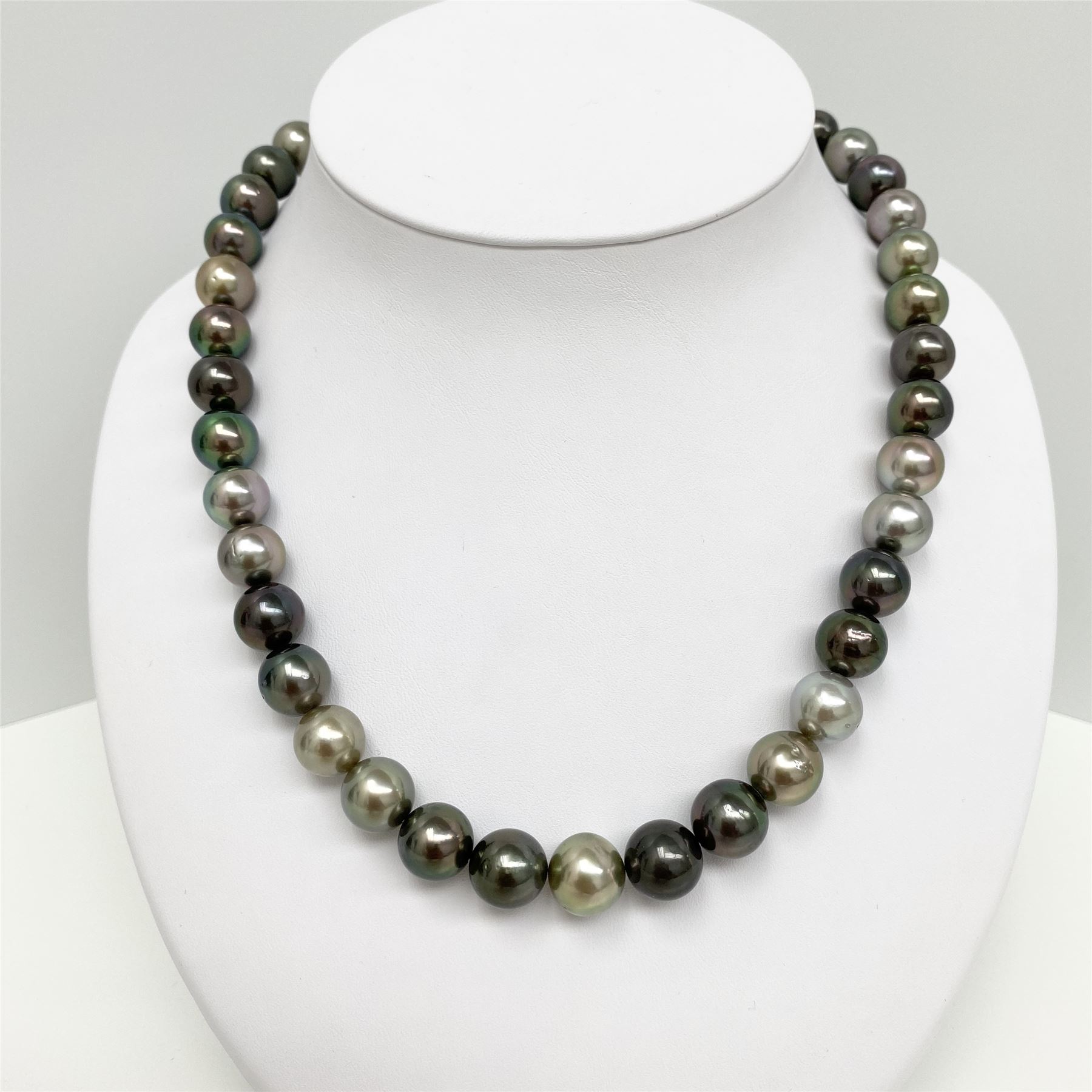 AAA Quality, Tahitian Multicolor Near-Round Pearl Necklace, 18 inches hand-knotted with gold fish-hook clasp #CP81