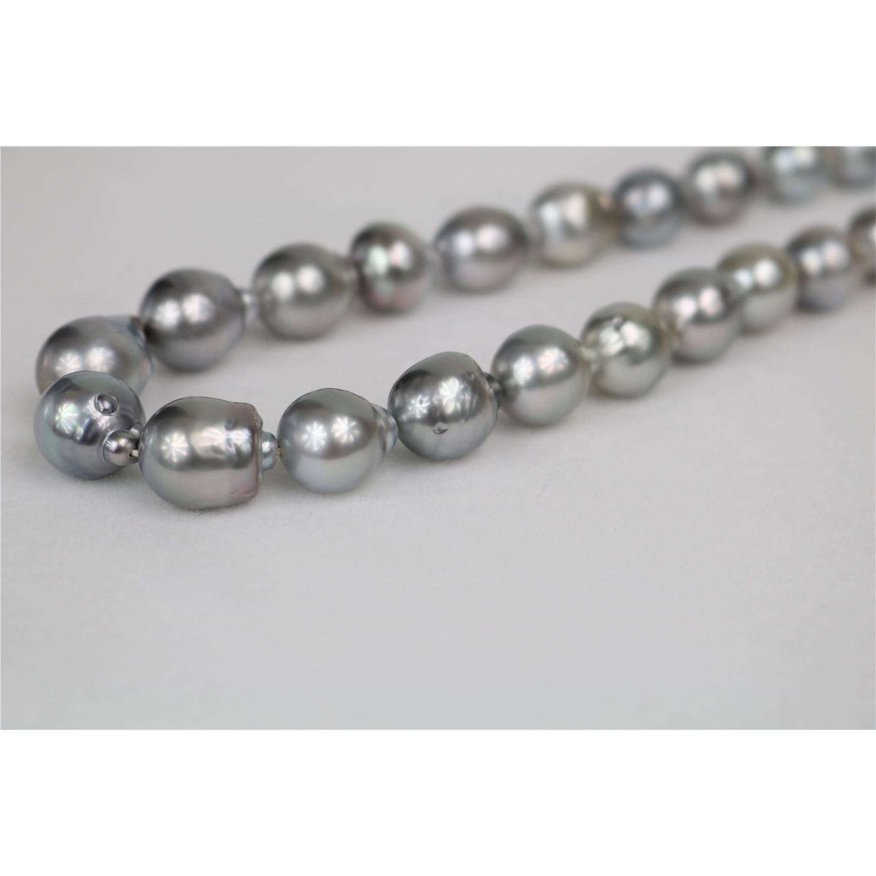 11-13mm Tahitian Silver Drop Baroque Necklace with Gold Clasp