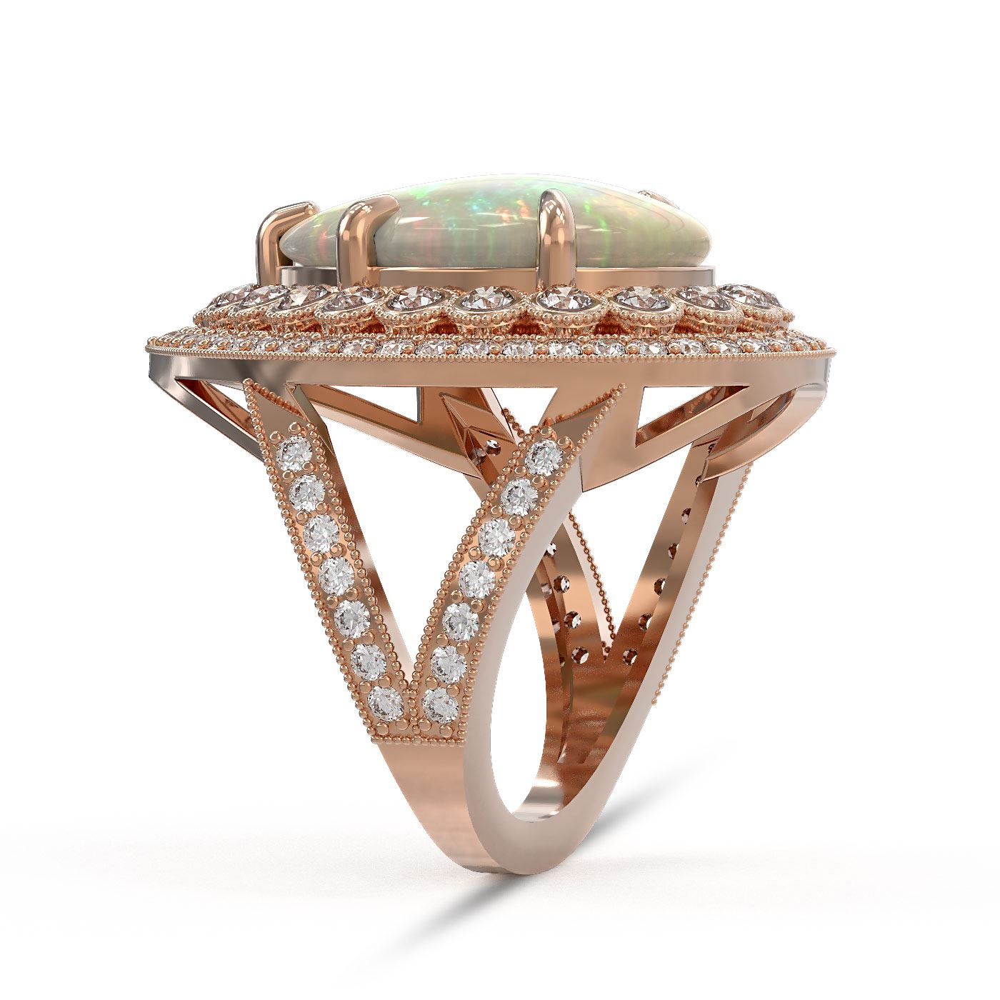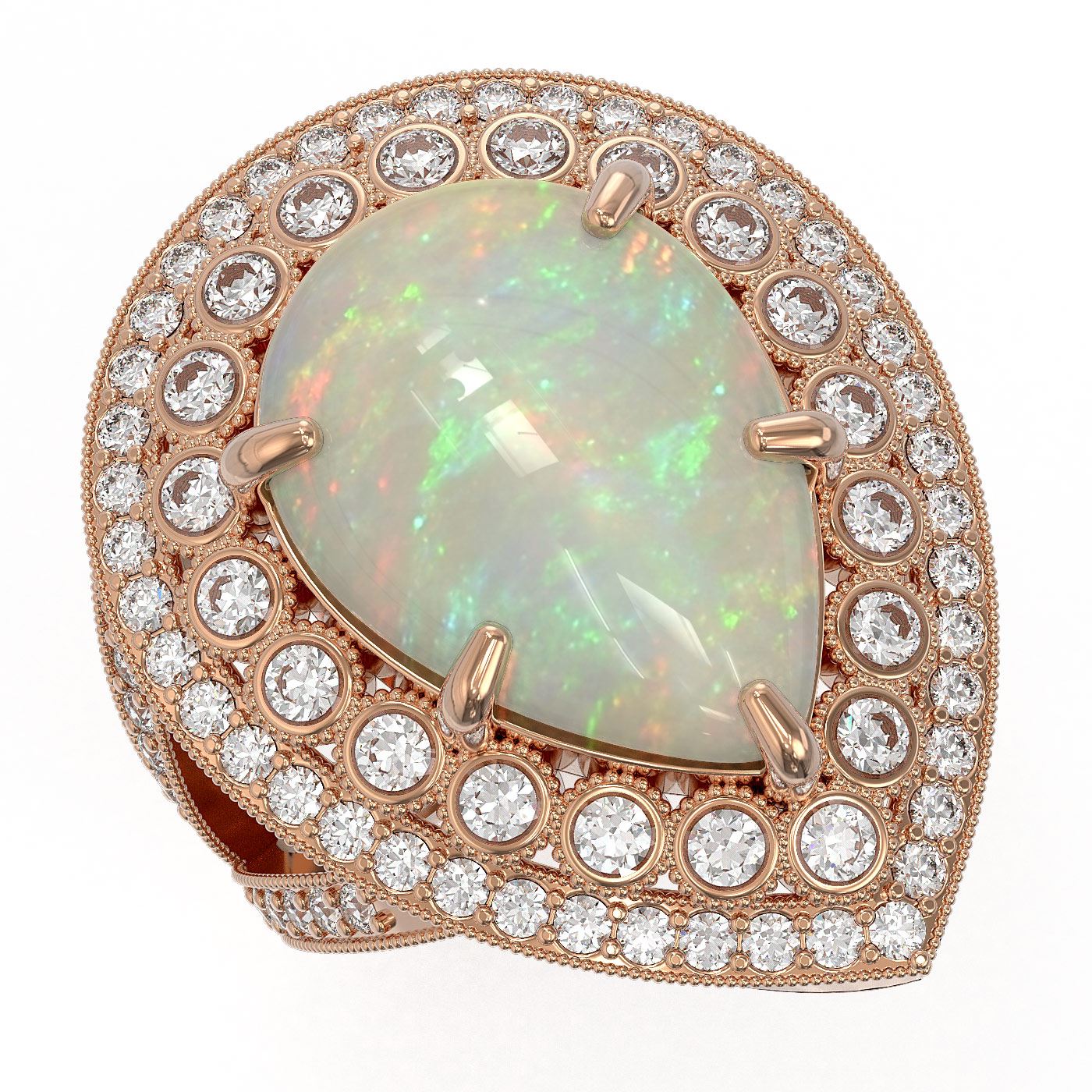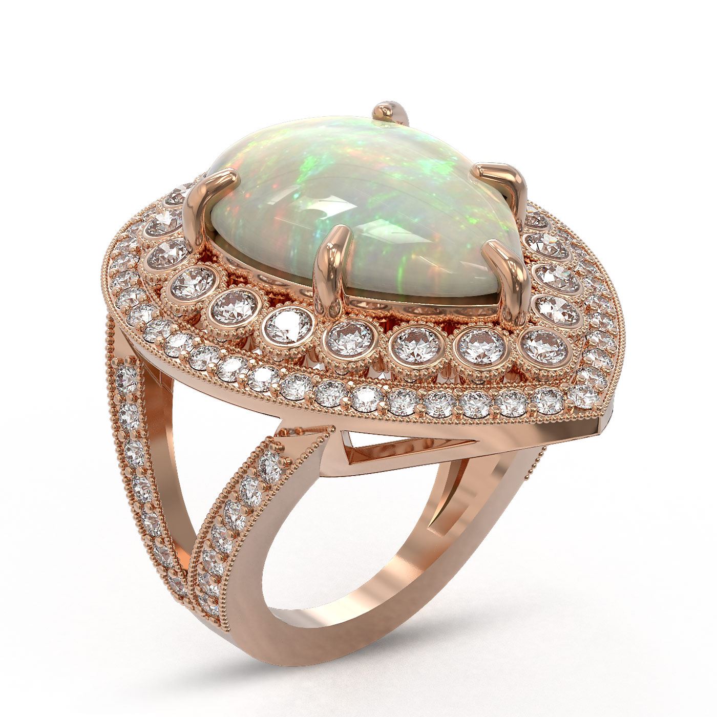 REF-333K6Y - SKU: 43296 ---- 11.19 ctw Certified Opal & Diamond Victorian Ring 14K Rose Gold