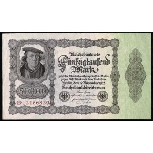 <style type="text/css"> body, td, th { font-family: Arial, Helvetica, sans-serif; font-size: 12px; color: #482424; margin: 0px; padding: 0px; } #header { background-image: url(http://www.bowersandmerena.com/ebay/images/template_v3_01.gif); clear: both; background-color: #590303; border-top-width: 2px; border-top-style: solid; border-top-color: #B38C4F; } #header #header_wrapper { height: 75px; clear: both; width: 800px; margin-right: auto; margin-left: auto; background-image: url(http://www.bowersandmerena.com/ebay/images/template_v3_03.gif); background-repeat: no-repeat; background-position: right; color: #F3EDCC; } #header #header_wrapper #header_logo { float: left; height: 75px; width: 444px; background-image: url(http://www.bowersandmerena.com/ebay/images/template_v3_02.gif); background-repeat: no-repeat; font-size: 10px; text-transform: capitalize; color: #B38C4F; } #header #header_wrapper #header_right { float: left; height: 75px; width: 356px; text-align: right; } #header #header_wrapper #header_right #headerLoginBtn { margin-bottom: 30px; } #header #header_wrapper #header_right input#txtSearch { color: #B49056; border: 1px solid #B49056; width: 175px; padding-top: 3px; padding-right: 3px; padding-bottom: 4px; padding-left: 3px; } #nav { height: 37px; background-image: url(http://www.bowersandmerena.com/ebay/images/template_v3_05.gif); clear: both; } #nav #nav_wrapper { height: 35px; width: 800px; margin-right: auto; margin-left: auto; border-left-width: 1px; border-left-style: solid; border-left-color: #B38C4F; } #nav #nav_wrapper a { padding-right: 15px; padding-left: 15px; border-right-width: 1px; border-right-style: solid; border-right-color: #B38C4F; height: 25px; padding-top: 10px; display: block; float: left; text-decoration: none; font-weight: bold; color: #5D0303; } #nav #nav_wrapper a:hover { color: #B38C4F; } #nav #nav_wrapper #search { float: right; padding-top: 7px; } #nav #nav_wrapper #search #txtSearch { font-family: Arial, Helvetica, sans-serif; font-size: 10px; text-transform: uppercase; color: #D2AE75; border: 1px solid #B38C4F; padding: 3px; } #content_bgd { background-image: url(http://www.bowersandmerena.com/ebay/images/template_v3_09.gif); background-repeat: repeat-y; background-position: center; padding-top: 15px; padding-bottom: 15px; background-color: #FBFBDB; } #content_wrapper { clear: both; height: auto; width: 800px; margin-right: auto; margin-left: auto; } .LotDetailWhite { line-height:normal; font-size:13px; font-family: arial,helvetica,sans-serif; color: White; font-weight: bold; } .LotDetailInformation { line-height:normal; font-size: 13px; font-family: arial,helvetica,sans-serif; } .LotDetailMessage { line-height:normal; font-size: 13px; font-family: arial,helvetica,sans-serif; color: red; } } tr.HeaderAuctionTitle td { color: #000000; font-weight: bold; padding: 2px; background-image: url(http://www.bowersandmerena.com/ebay/images/template_v3_05.gif); background-repeat: repeat-x; border-bottom-width: 1px; border-bottom-style: solid; border-bottom-color: #B38C4F; } table.AuctionSummary a, table.AuctionSummary a:link, table.AuctionSummary a:visited { color: #0000FF; text-decoration: none; } } td.tableHeaderLeft { border-left-width: 1px; border-left-style: solid; border-left-color: #B38C4F; } td.tableHeaderRight { border-right-width: 1px; border-right-style: solid; border-right-color: #B38C4F; } td.tableCellMiddle { border-left-width: 1px; border-left-style: solid; border-left-color: #B38C4F; border-right-width: 1px; border-right-style: solid; border-right-color: #B38C4F; padding: 5px; } tr.footer td { border-top-width: 1px; border-top-style: solid; border-top-color: #B38C4F; } </style> </head> <body> <div id="header"> <div id="header_wrapper"> <div id="header_logo"> </div> <div id="header_right"> </div> </div> </div> <div id="nav"> <div id="nav_wrapper"> <a href="http://www.bowersandmerena.com">Our eBayLive Auctions</a> <a href="#PaymentInfo">Payment Information</a> <a href="#ShippingInfo">Shipping Information</a> <a href="#About">About Bowers and Merena</a> </div> </div> <div id="content_bgd"> <div id="content_wrapper"> <table width="100%" border="0" cellpadding="5" cellspacing="0" class="AuctionSummary"> <tbody> <tr class="HeaderAuctionTitle" style="height: 25px;"> <td align="left" class="tableHeaderLeft" > </td> <td align="center" class="tableHeaderRight"> <span style="font-size: large;">Lot #2752. Germany. Lot of (11) 1922 50000 Mark. Republic Treasury Notes. Third Issue. VF/Unc.</span> </td> </tr> <tr> <td colspan="3" class="tableCellMiddle"> P-79, 80. This group of 11 notes is separated by having five notes which are Pick-79 and consist of a couple Unc notes and three circulated pieces. The last six notes are Pick-80 examples, which differ only by an additional serial number in the upper right and the addition of a multi-colored underprint on the face and back.