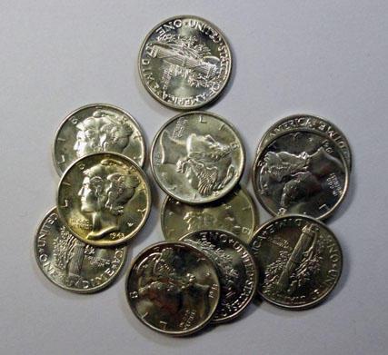 11 1943 Mercury dimes WHITE CHOICE to GEM BU