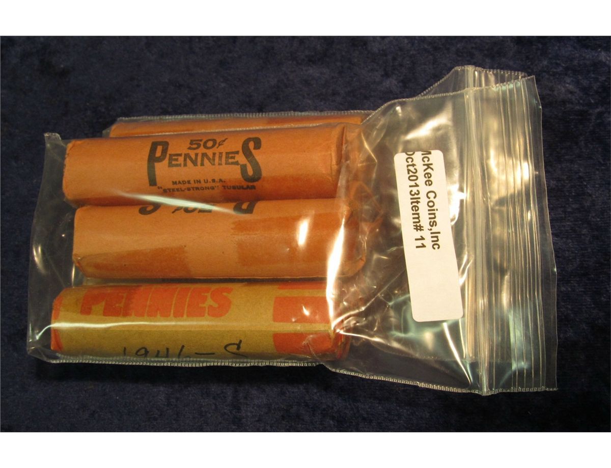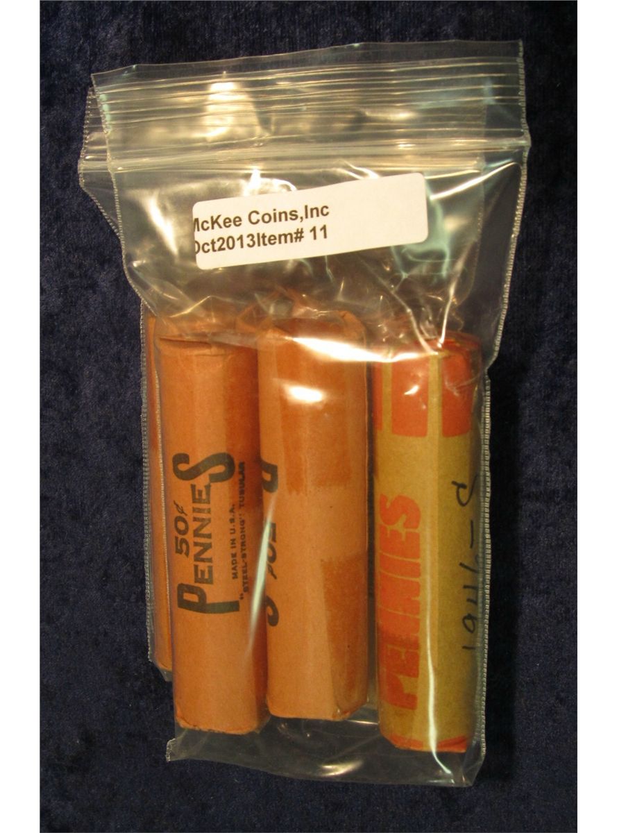 11. 1945 & 46 P, D, & S Solid Date Rolls of Lincoln Cents. Circulated. (6 rolls or $3.00 face value of Wheat Cents).