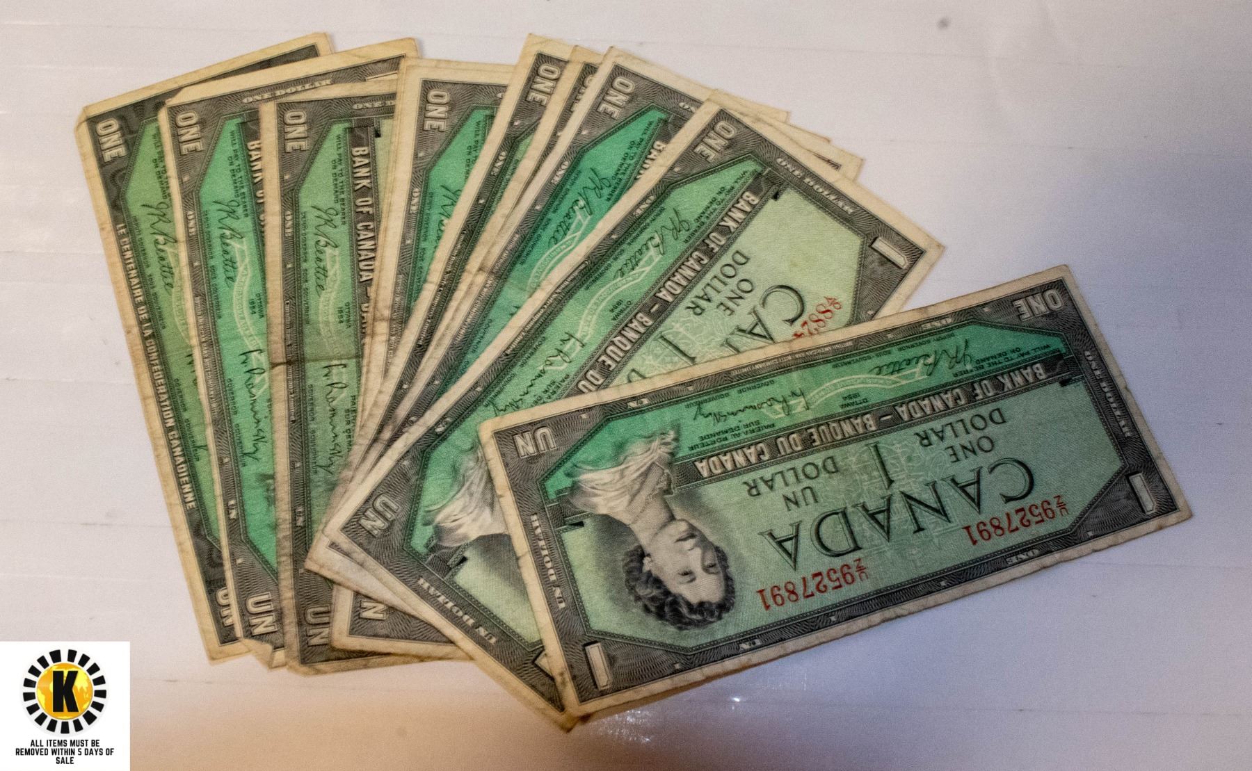 11 - 1954 CANADIAN ONE DOLLAR BILLS