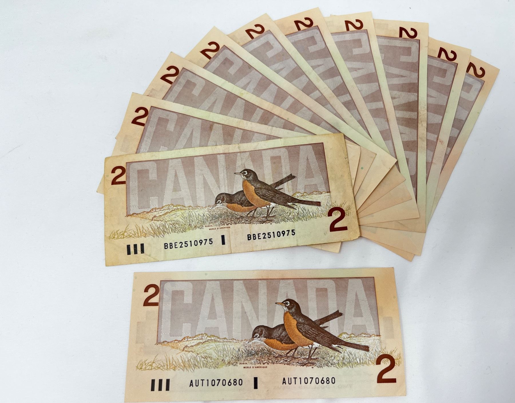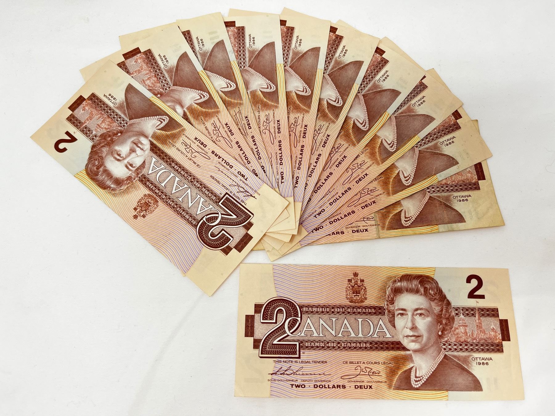 Last issue of Canada's $2 bill dated 1986 lot of 11 ($22 face value)