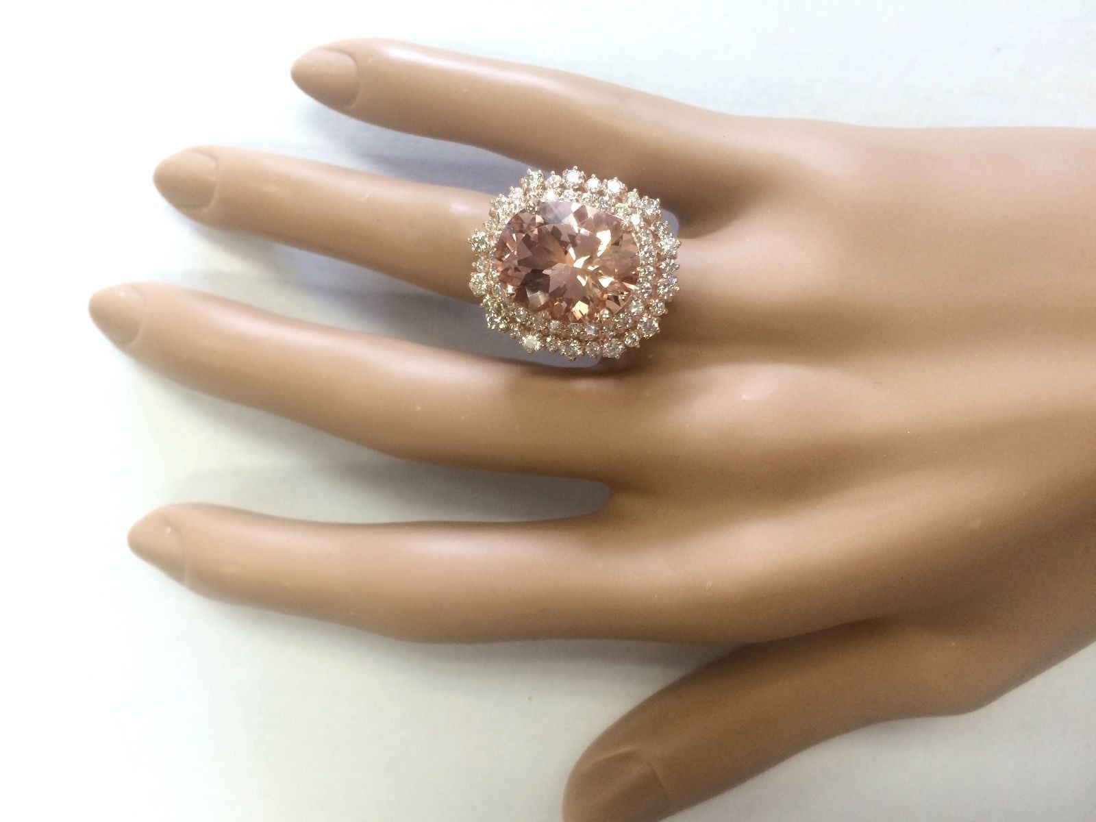 11.24 CTW Natural Morganite And Diamond Ring In 18K Rose Gold