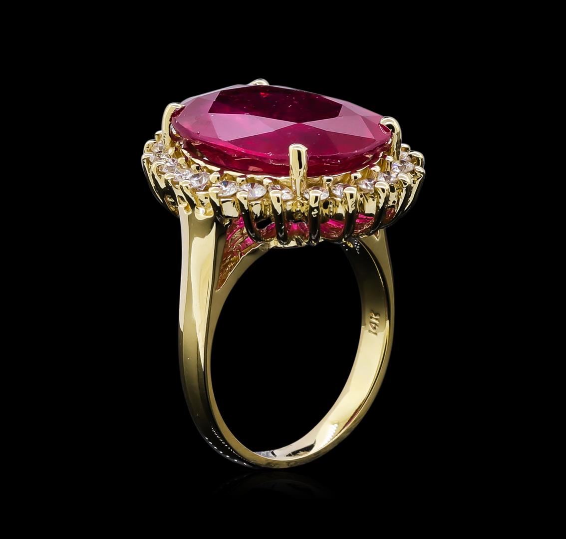 One ring featuring: 14KT yellow gold weighing 6.65 grams containing one ruby with a total weight of 11.25ct and diamonds with a total weight of 0.56ct.