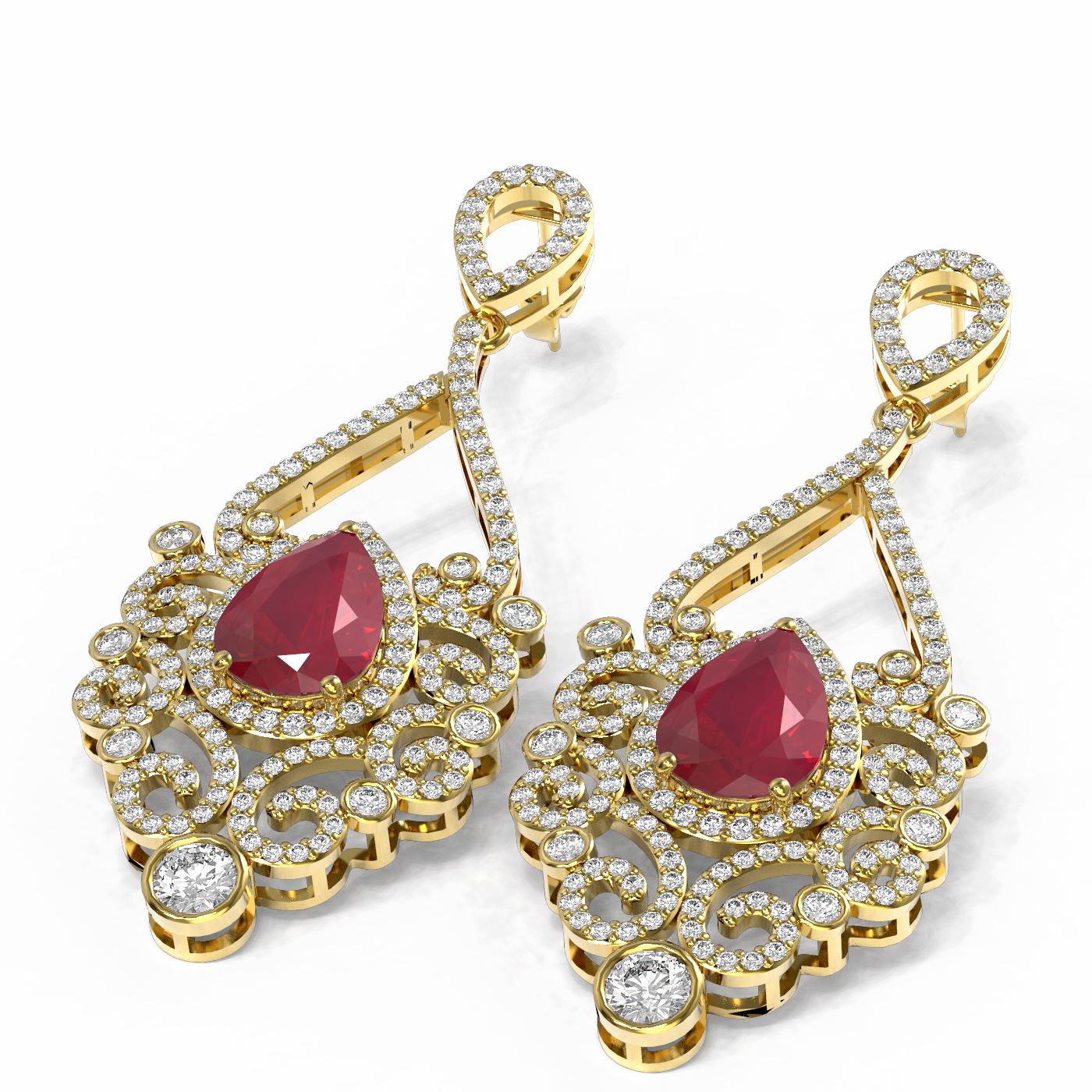 REF-525G5W - SKU: 59533 ---- 11.26 ctw Ruby & Diamond Earrings 18K Yellow Gold