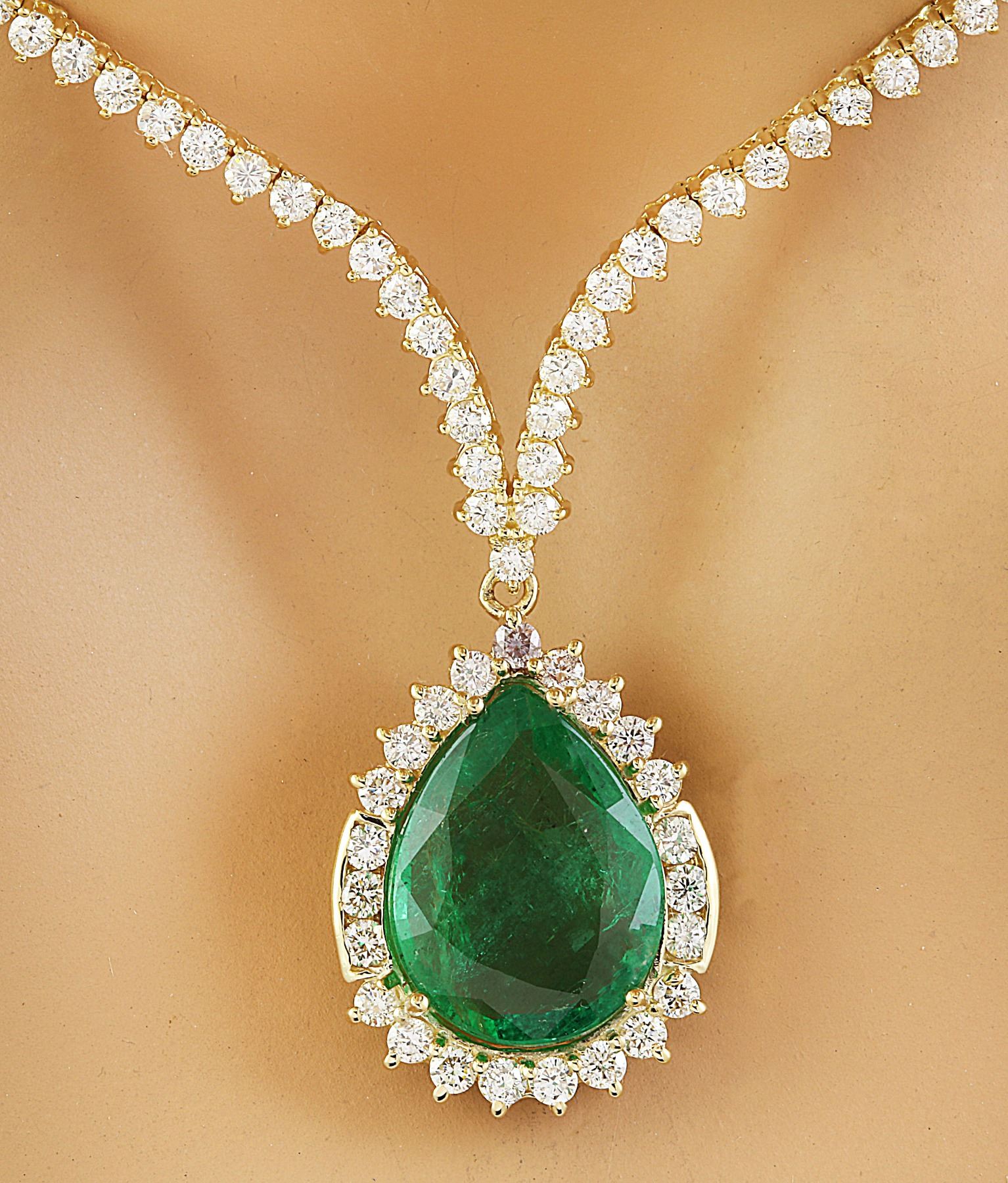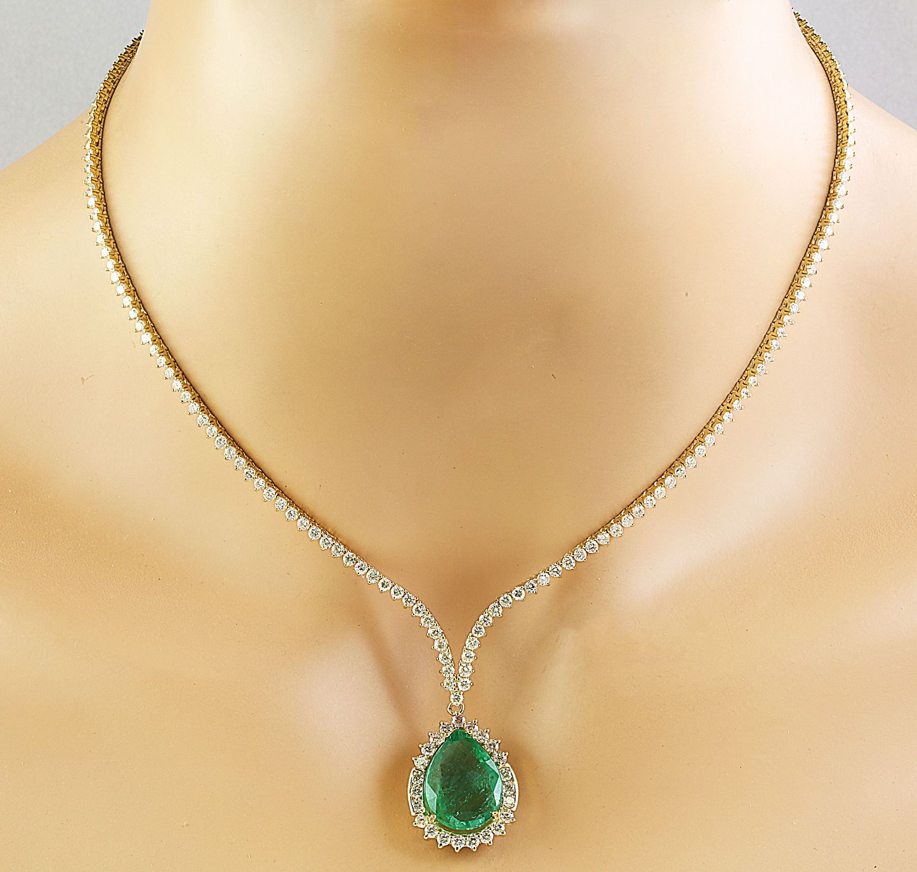 11.27 CTW Emerald 14K Yellow Gold Diamond Necklace
