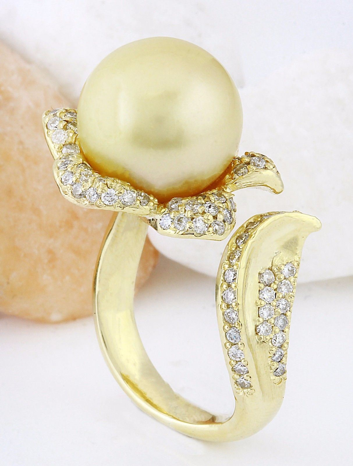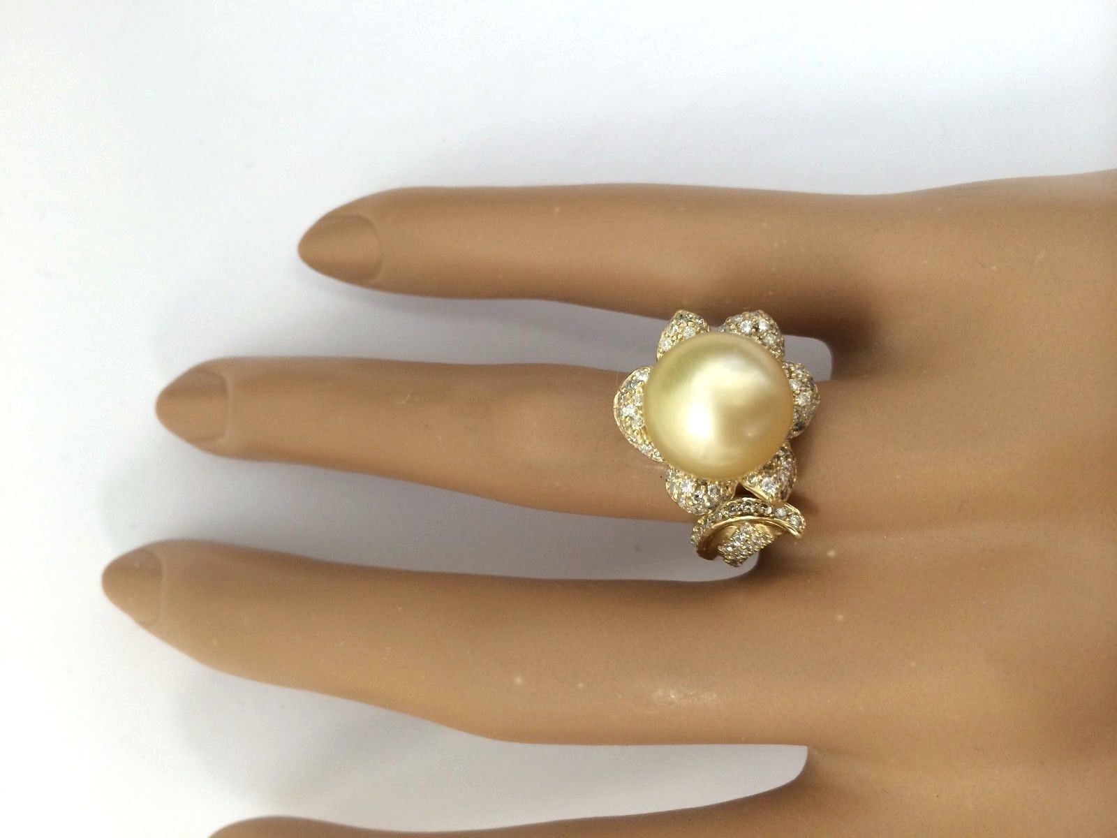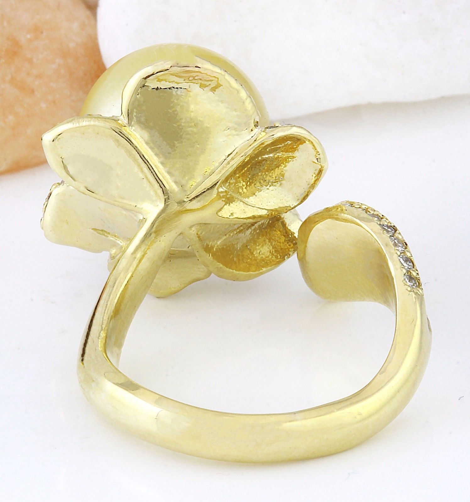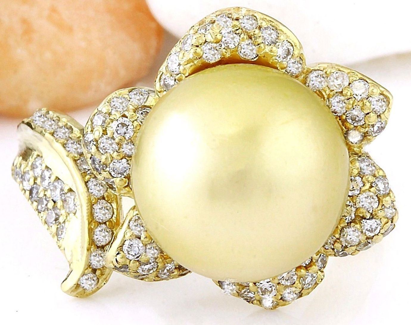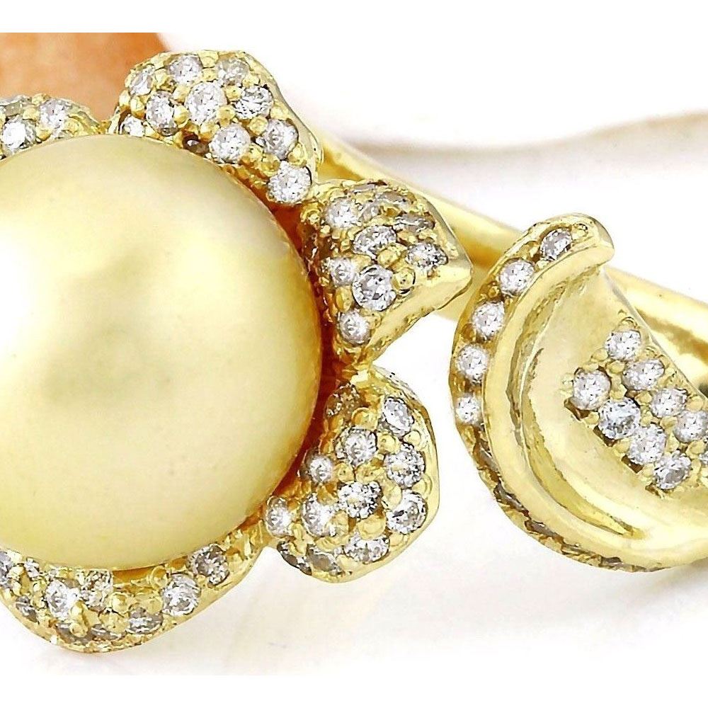 11.28 mm Gold South Sea Pearl 14K Solid Yellow Gold Diamond Ring