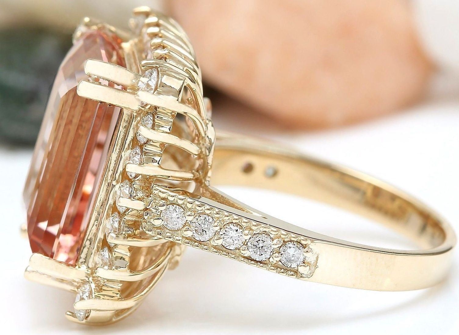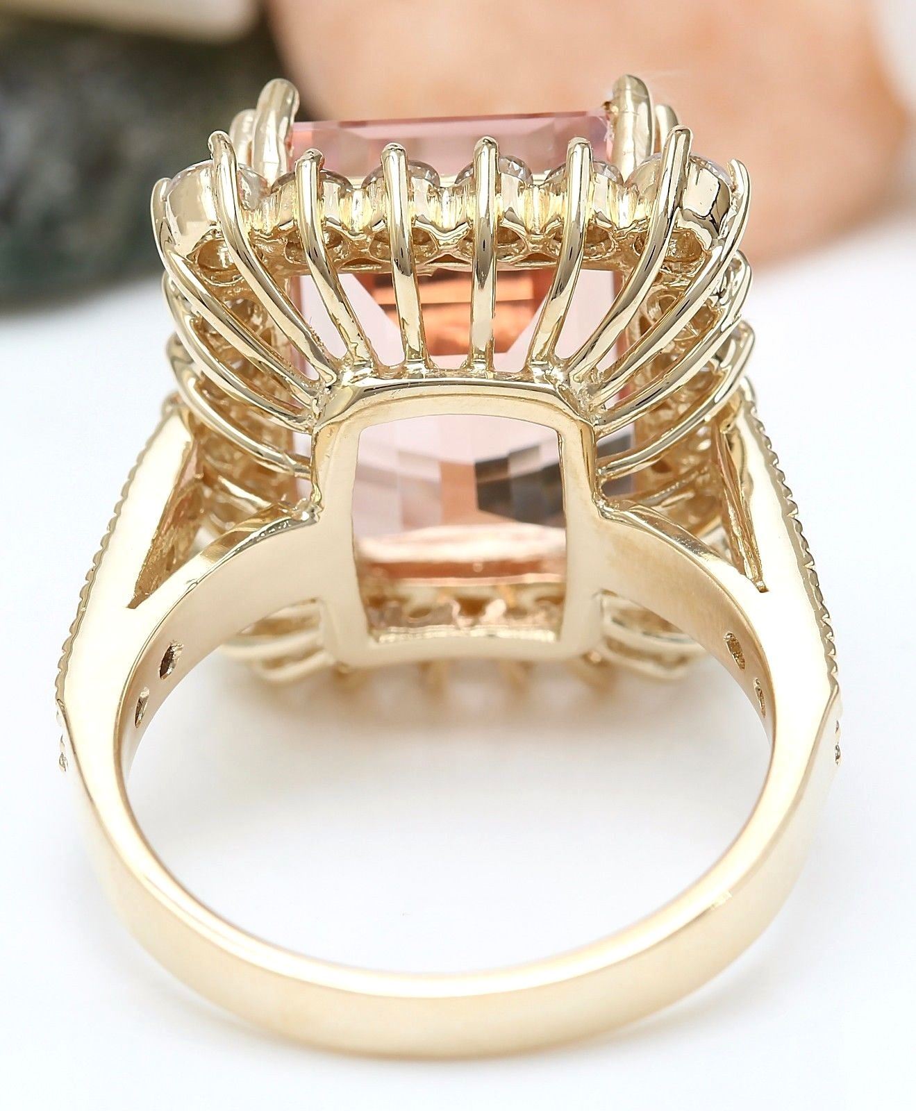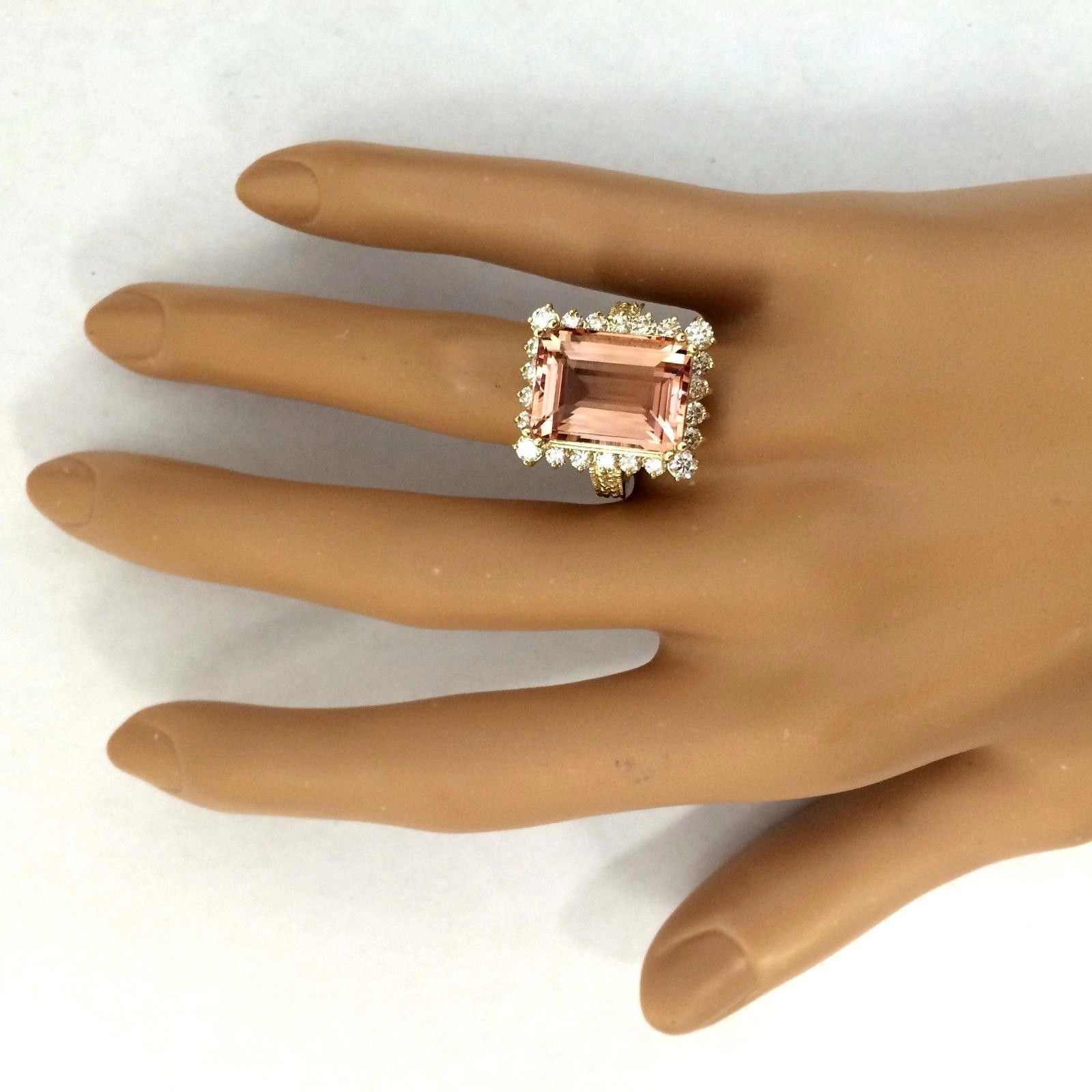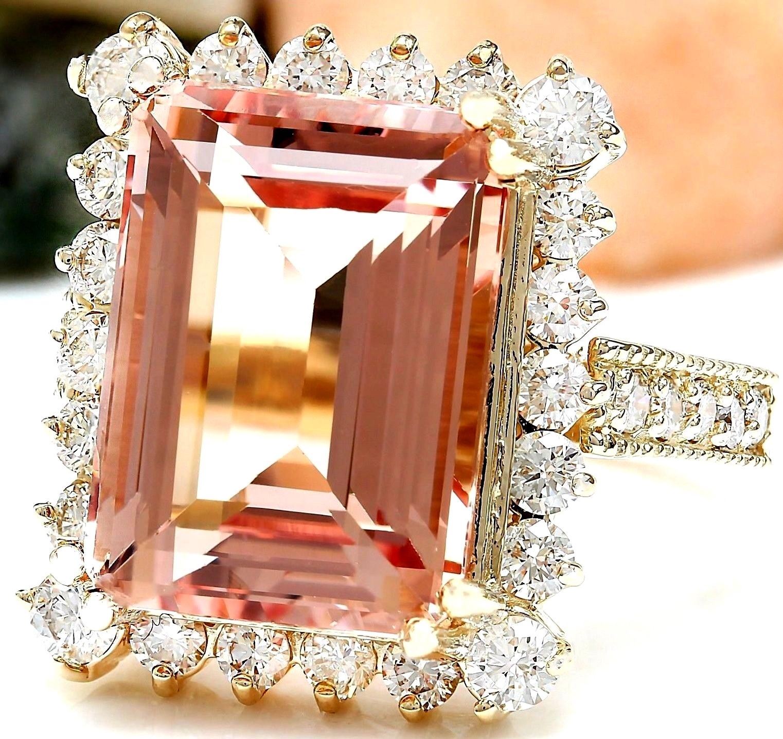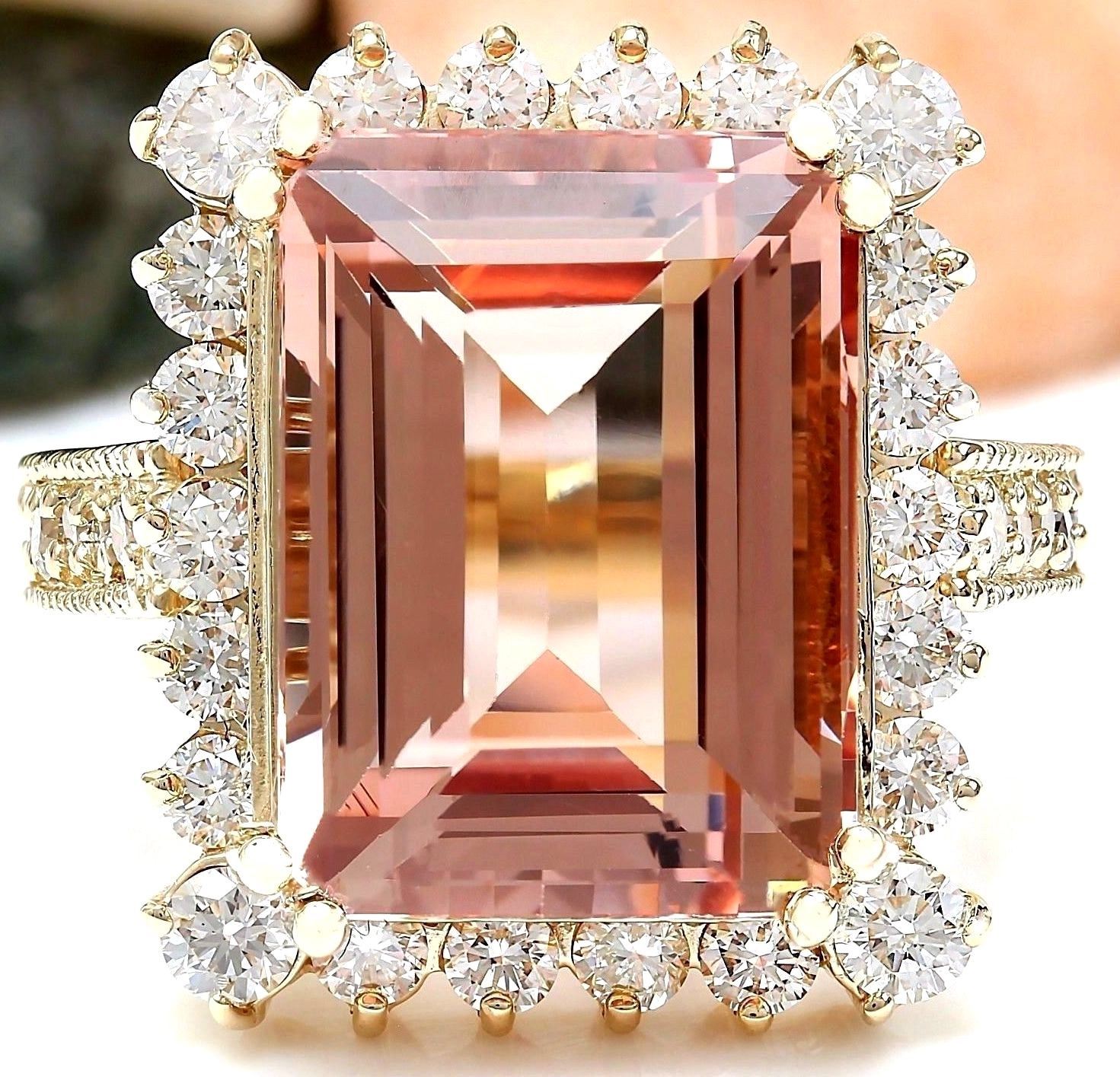 11.29 Carat Natural Morganite 18K Solid Yellow Gold Diamond Ring