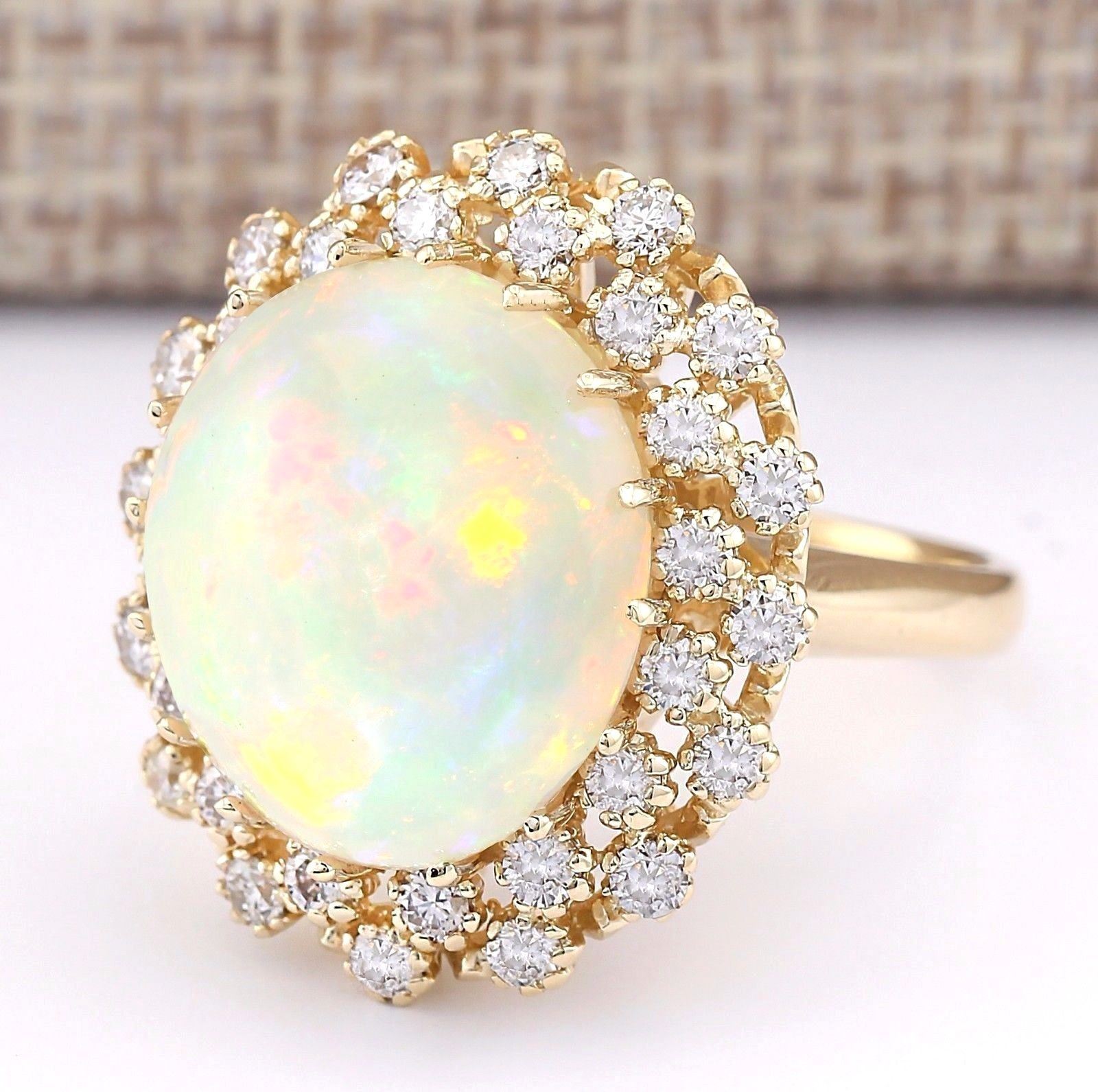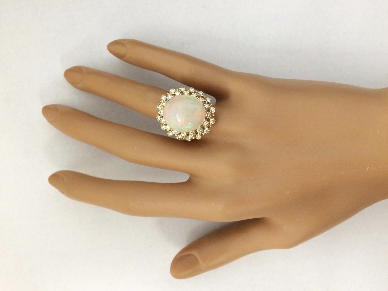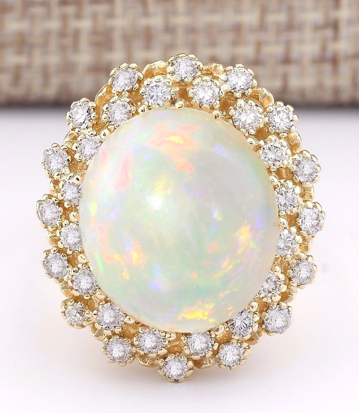 11.29 CTW Natural Opal And Diamond Ring In 18K Yellow Gold