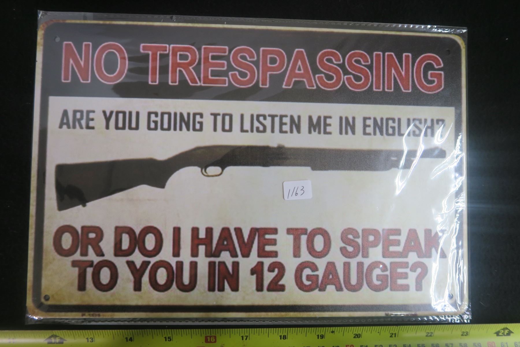 11 3/4 X 8" Tin Sign "Speak 12 Gauge"