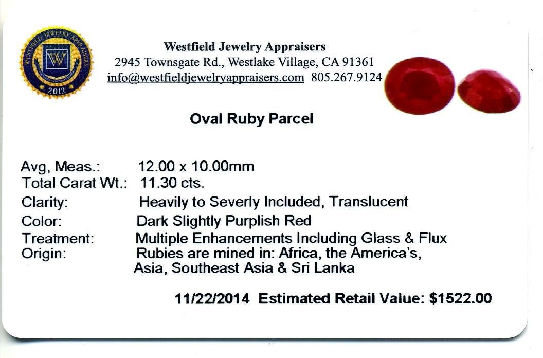 11.3ctw. Oval Ruby Parcel. Westfield Appraised at $1,522.00.