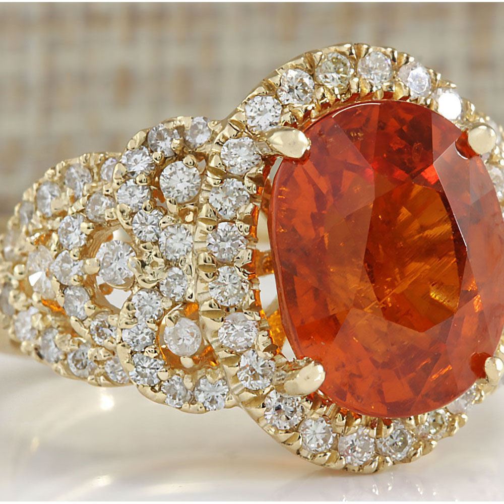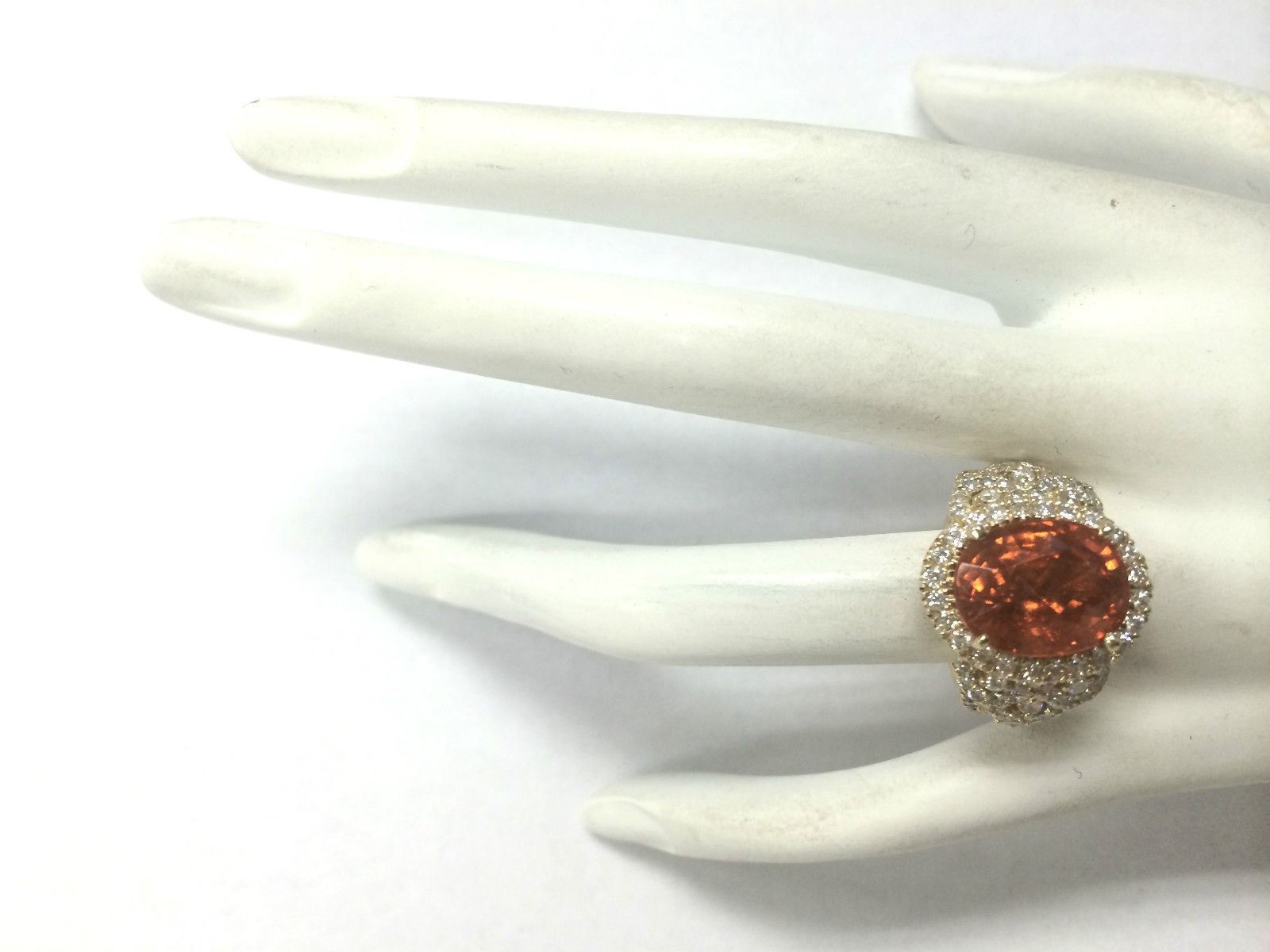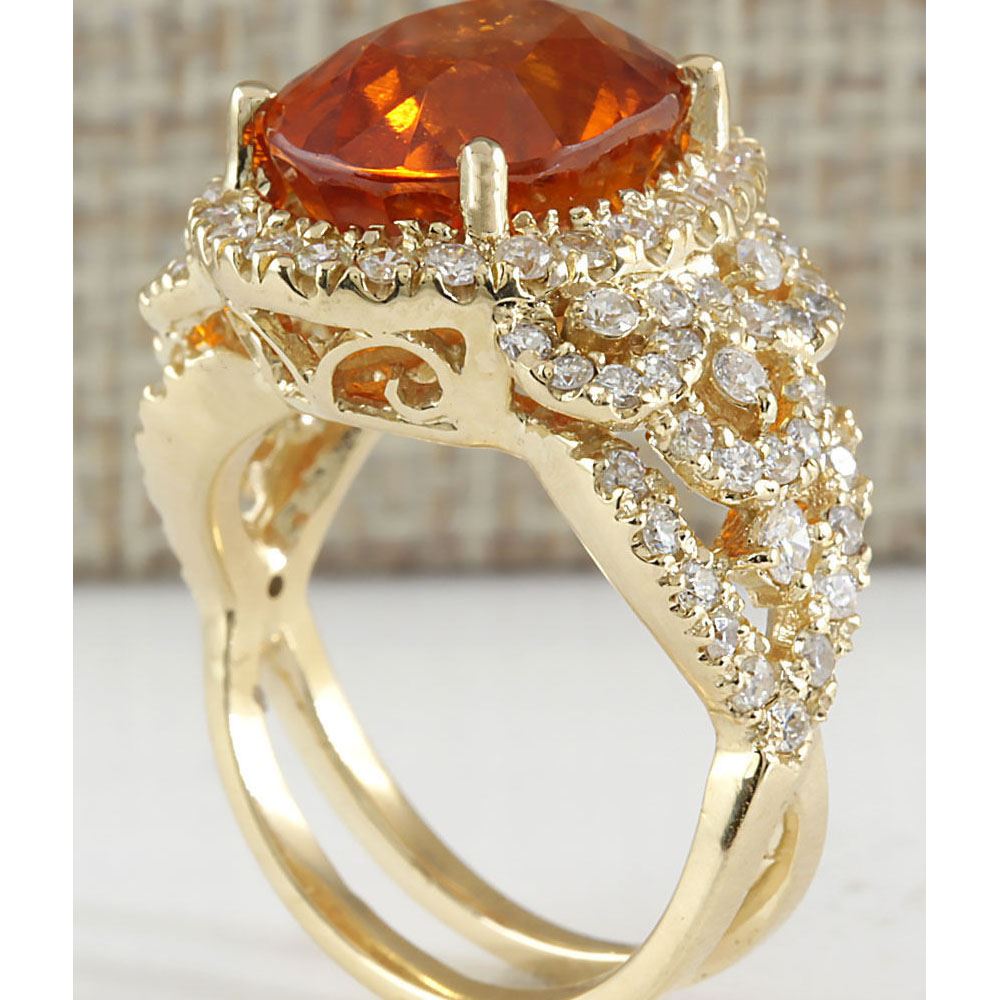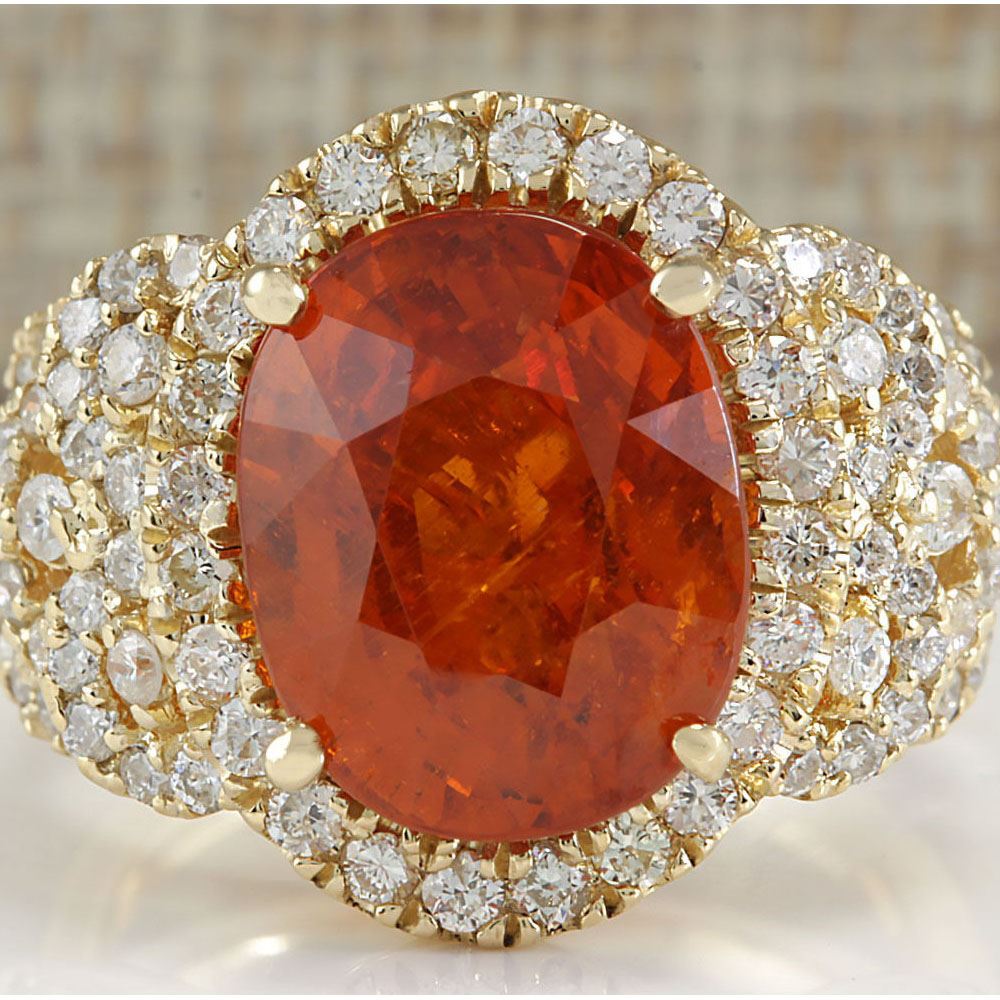 11.31CTW Natural Mandarin Garnet And Diamond Ring In14K Yellow Gold