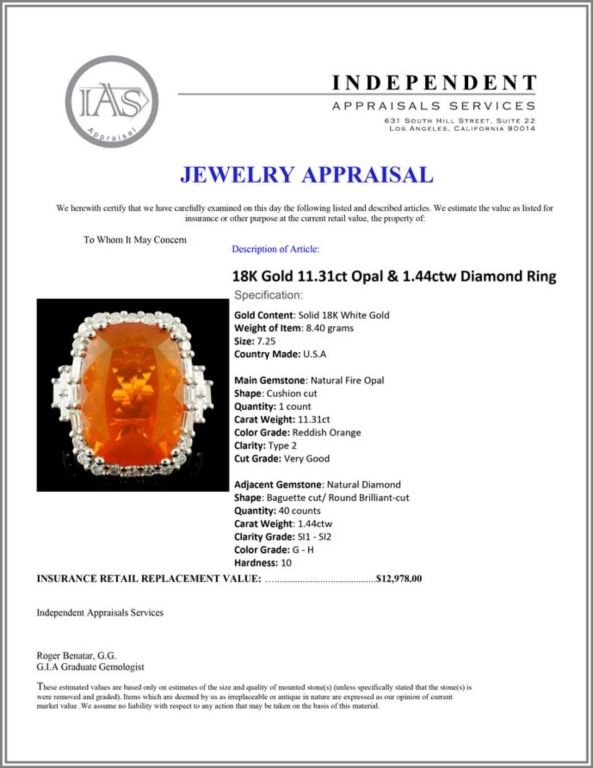 Regarding Appraised Jewelry and Loose Stones - Auctionfarm sends them out to a third party for Retail Replacement Value Appraisals, which are the most common. These types of evaluations are written for insurance needs. This would be the cost to replace the jewelry with an item of equal quality and kind, considered to be the current market price or the replacement value. This type of appraisal is done to protect you in the event of damage or loss of a valuable item. Our appraisals are conducted by independent 3rd Party appraisal firms that utilizes Certified GIA Gemologist. Appraisals should be used for verification of gemstone and/or metal weight, size, and grade only, not actual value. Appraisal value should be considered for insurance purposes only, not actual value, as price varies greatly from retail locations thru out the world. Items should not be purchased with the expectation to resell for appraisal price, or for profit.