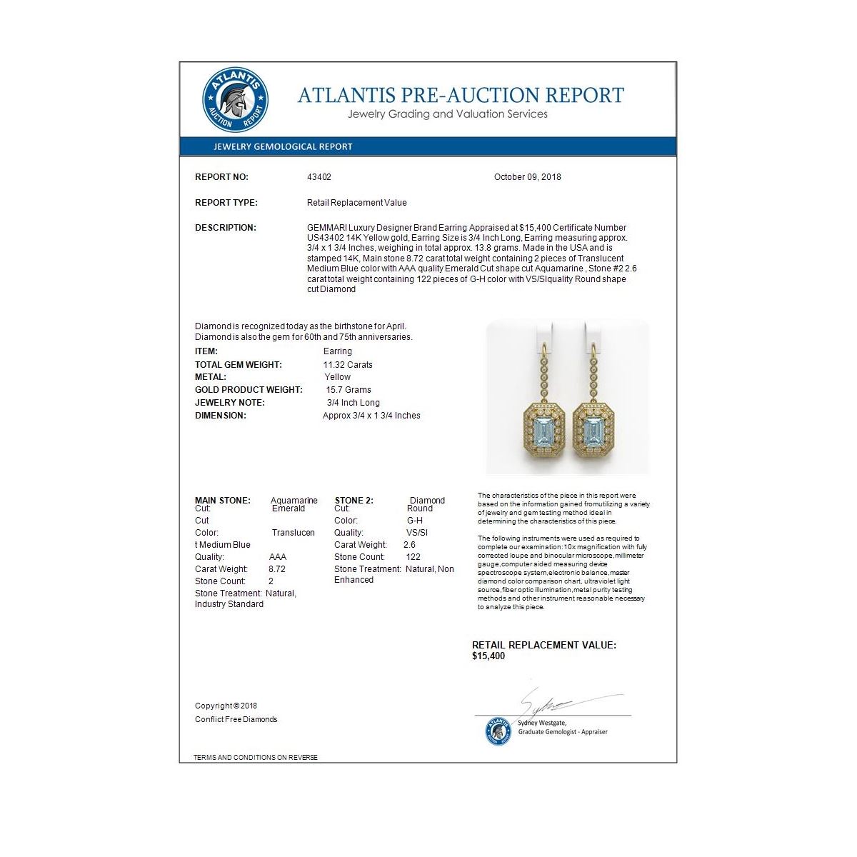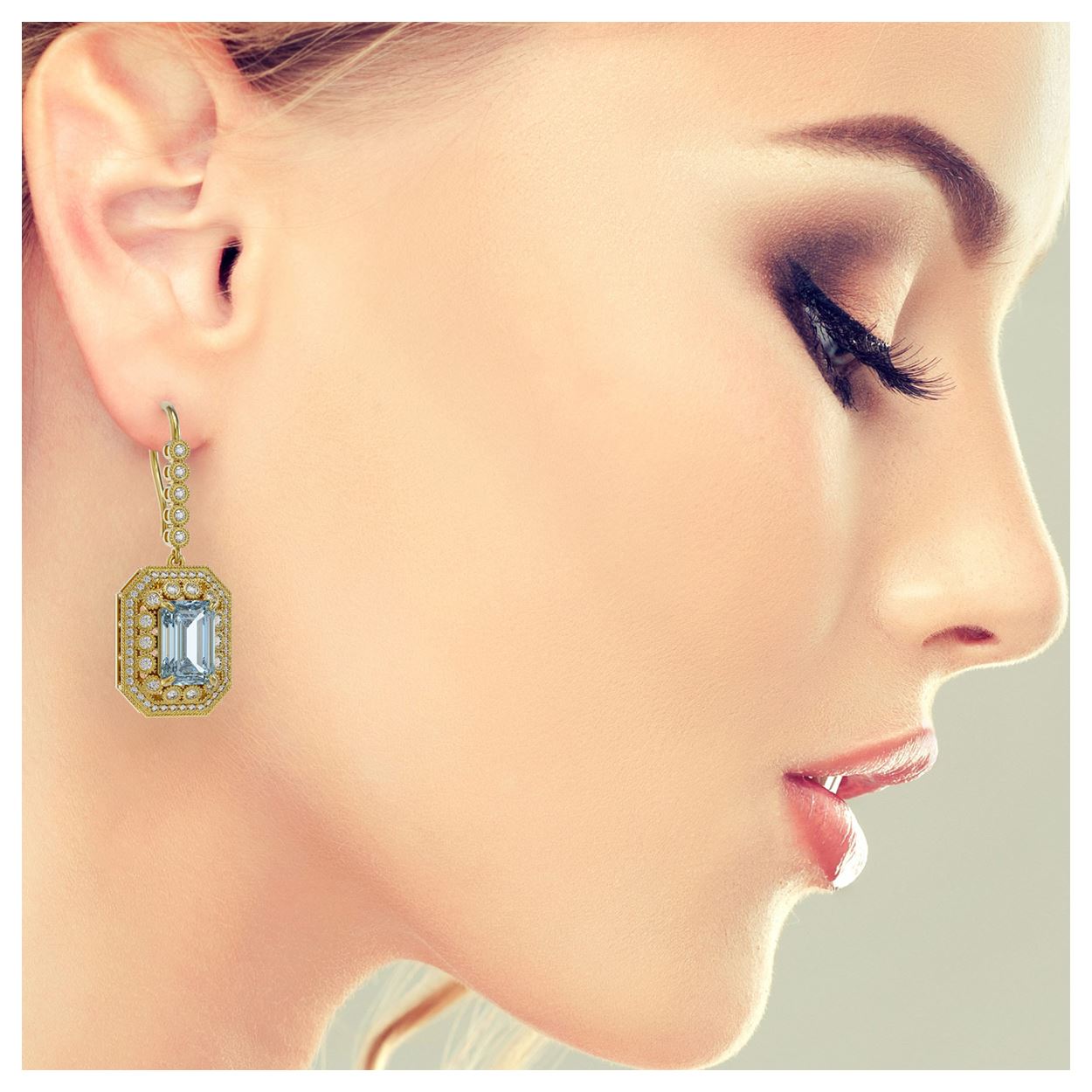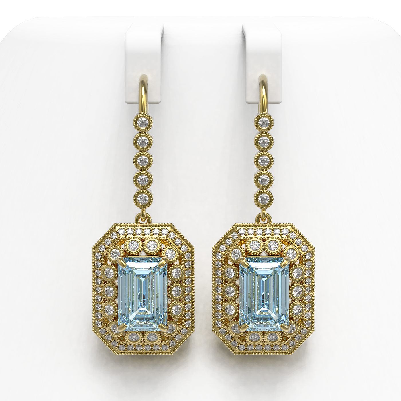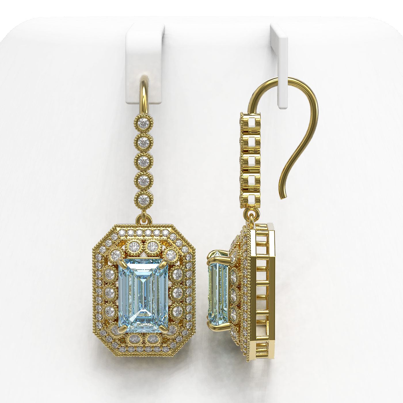 11.32 ctw Aquamarine & Diamond Earrings 14K Yellow Gold