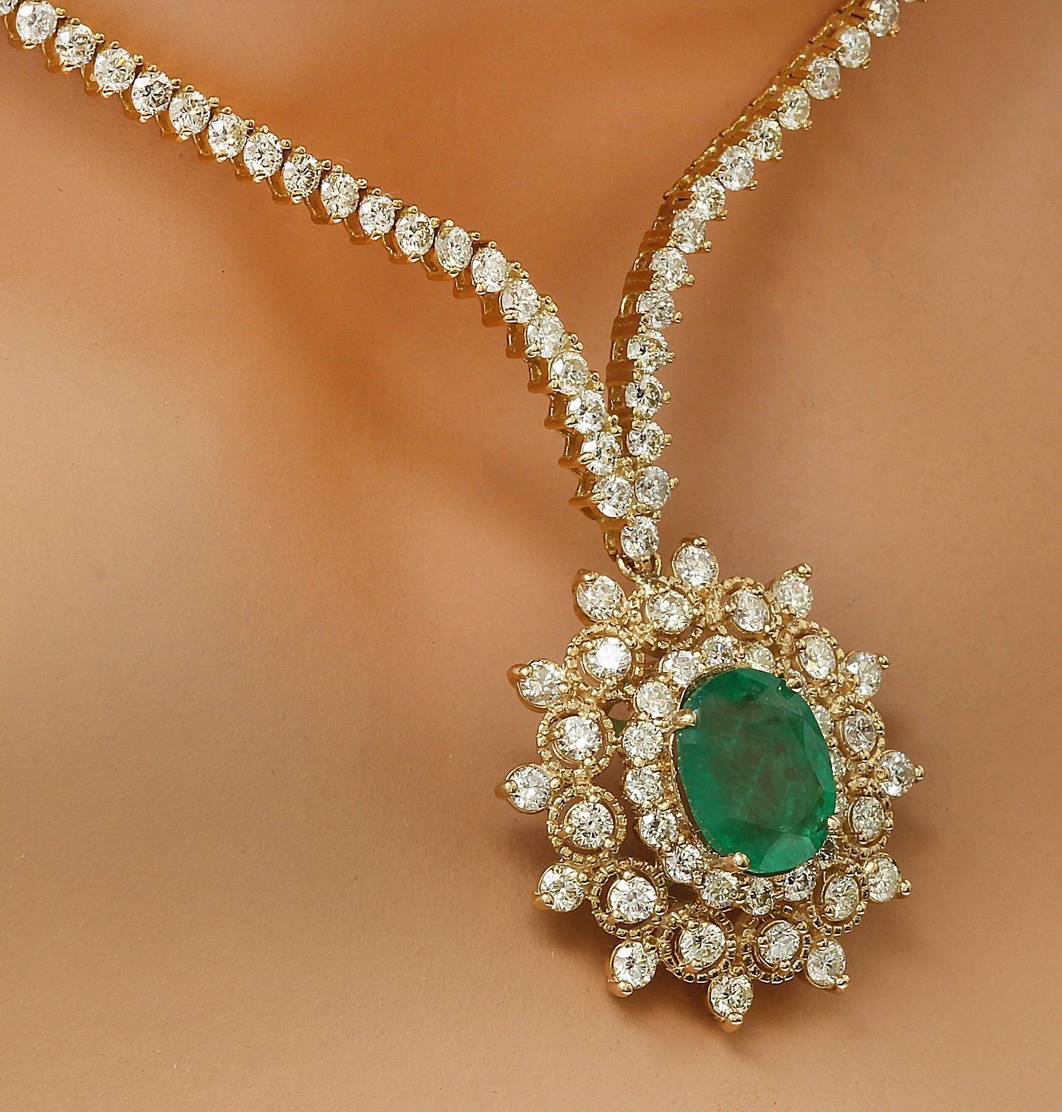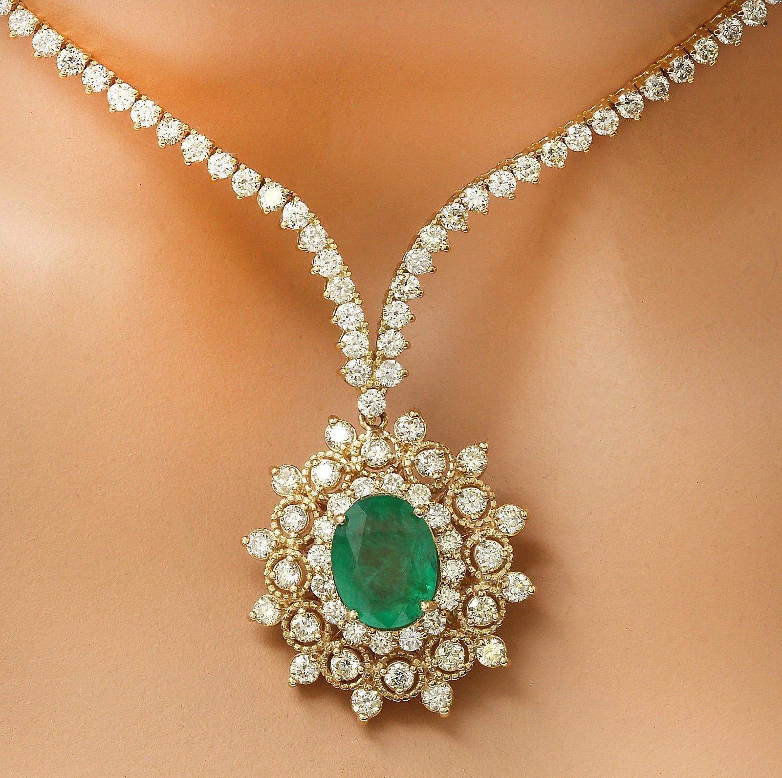 11.33 Carat Natural Emerald 14K Solid Yellow Gold Diamond Necklace