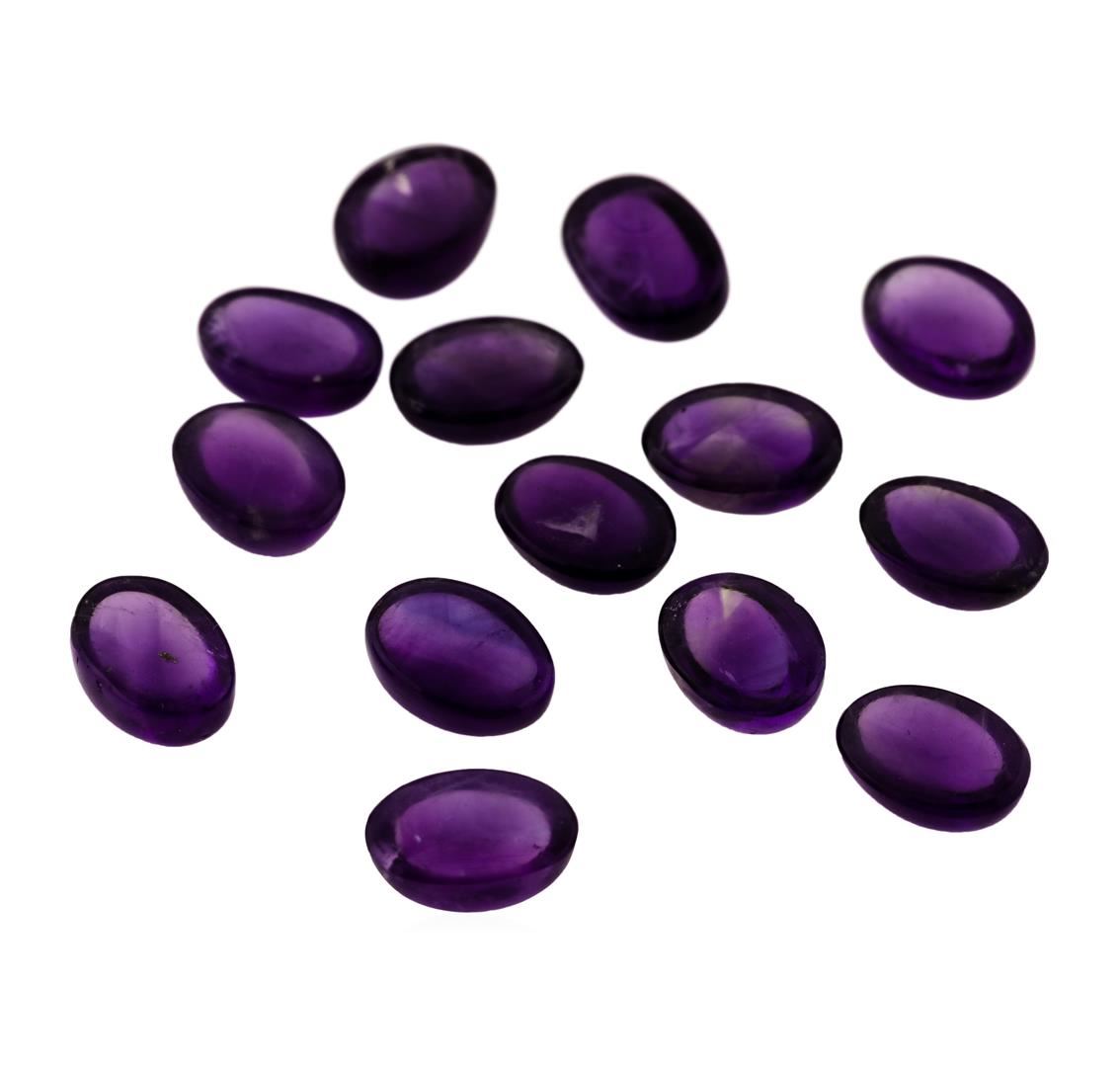 One natural oval cabochon amethyst parcel of fourteen with an exact weight of 11.36ctw., clarity is eye clean, purple, dark. Gemological Appraisals Services estimates the retail value at $340.8 GAS Appraised.