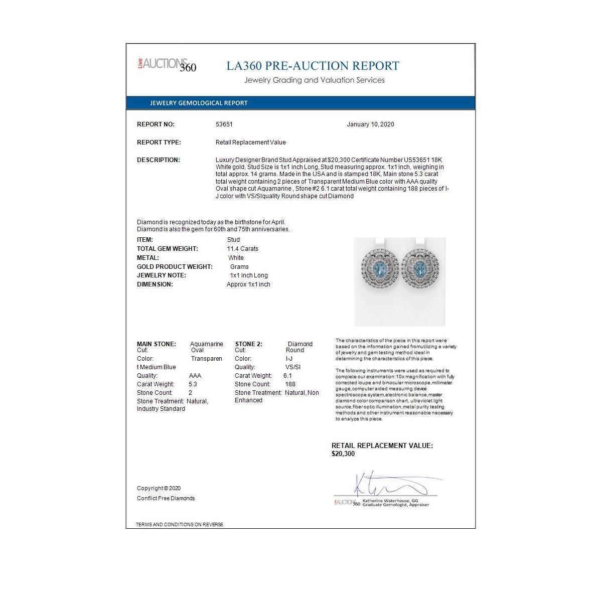 REF-527M3G - SKU: 53651 ---- 11.4 ctw Aquamarine & Diamond Earrings 18K White Gold