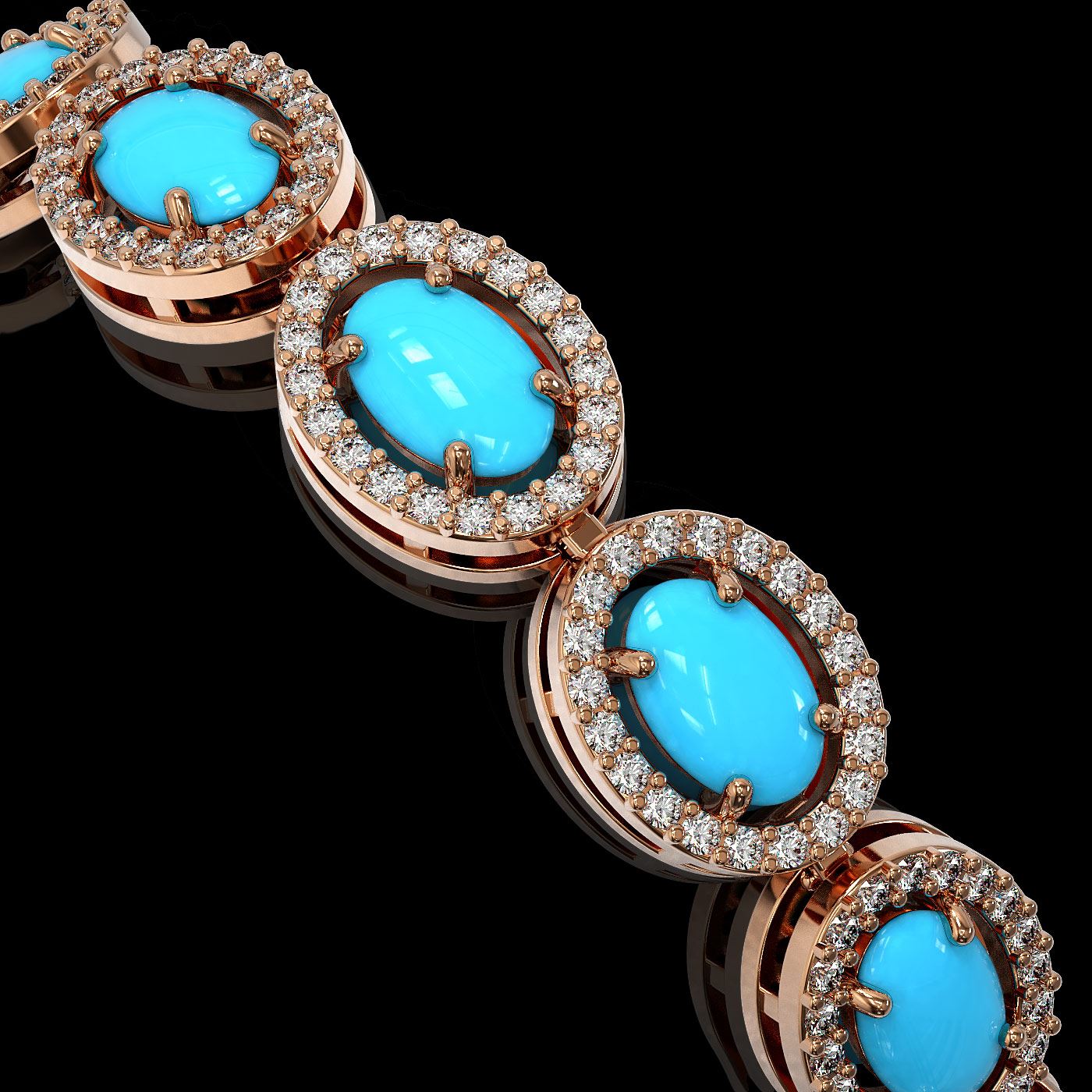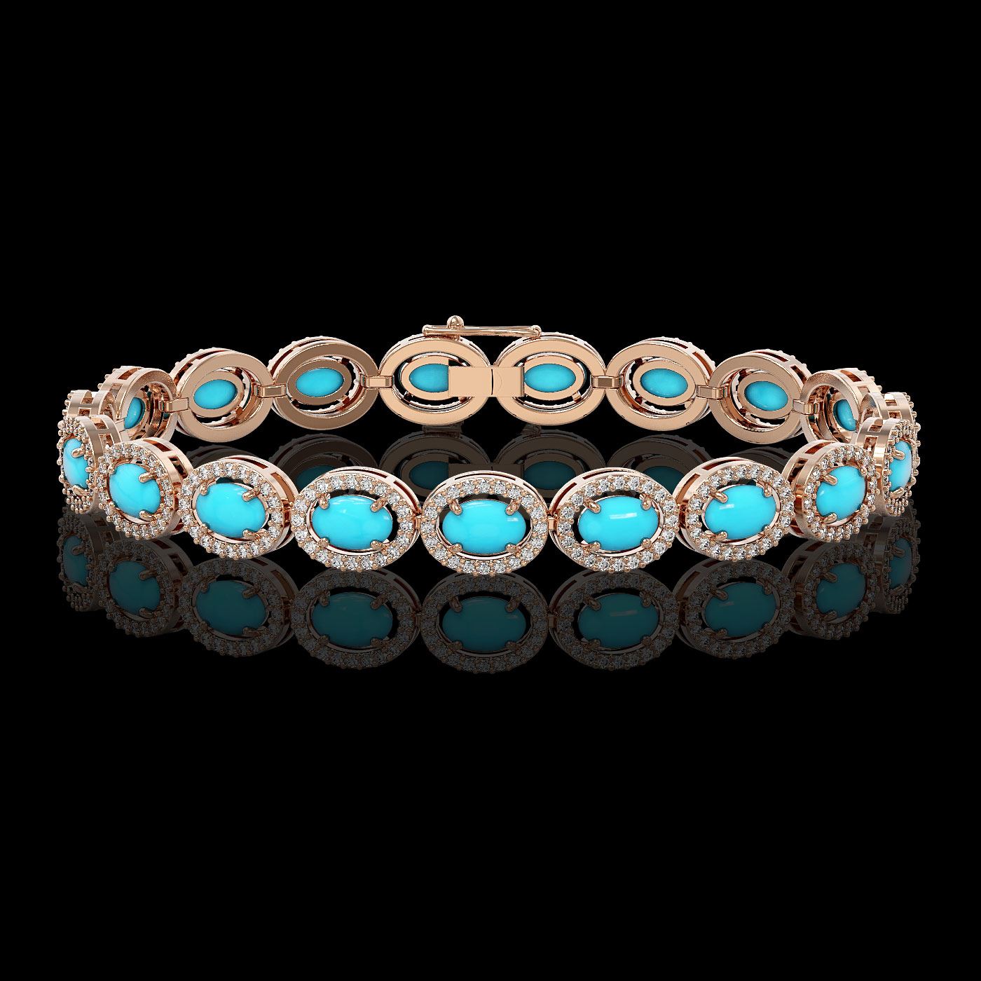 REF-227G8W - SKU: 45999 ---- 11.40 ctw Turquoise & Diamond Micro Pave Halo Bracelet 10k Rose Gold