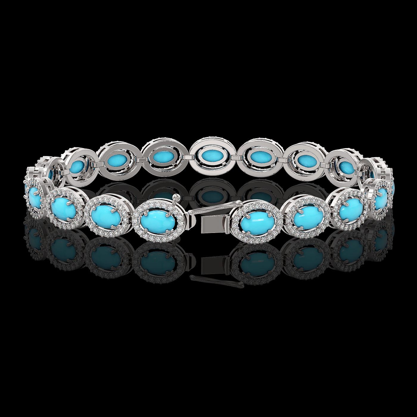 REF-227F8M - SKU: 45998 ---- 11.40 ctw Turquoise & Diamond Micro Pave Halo Bracelet 10k White Gold