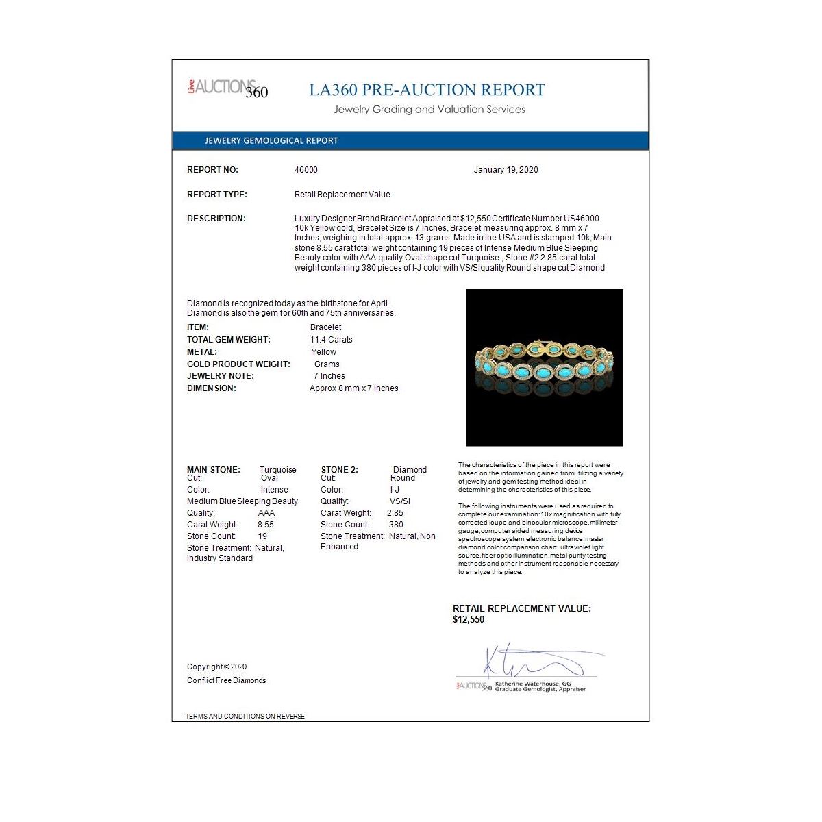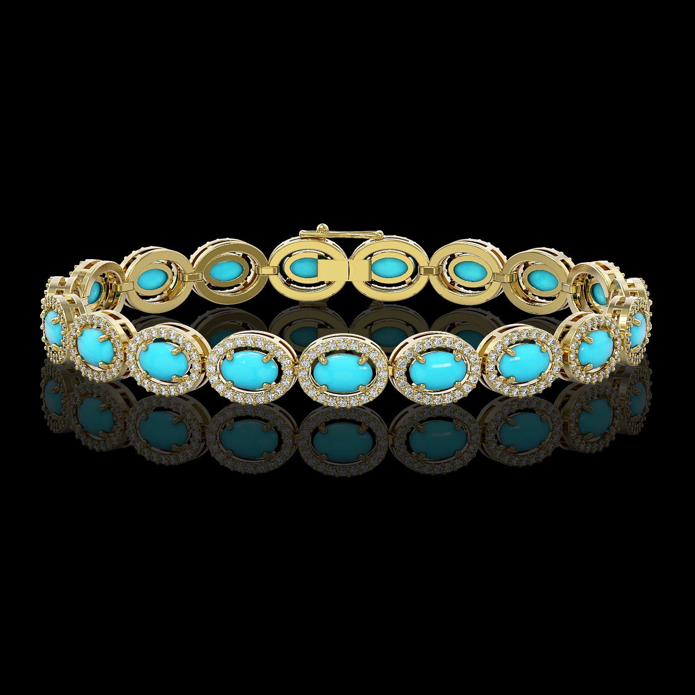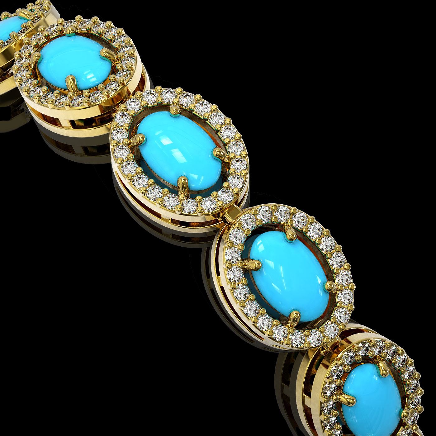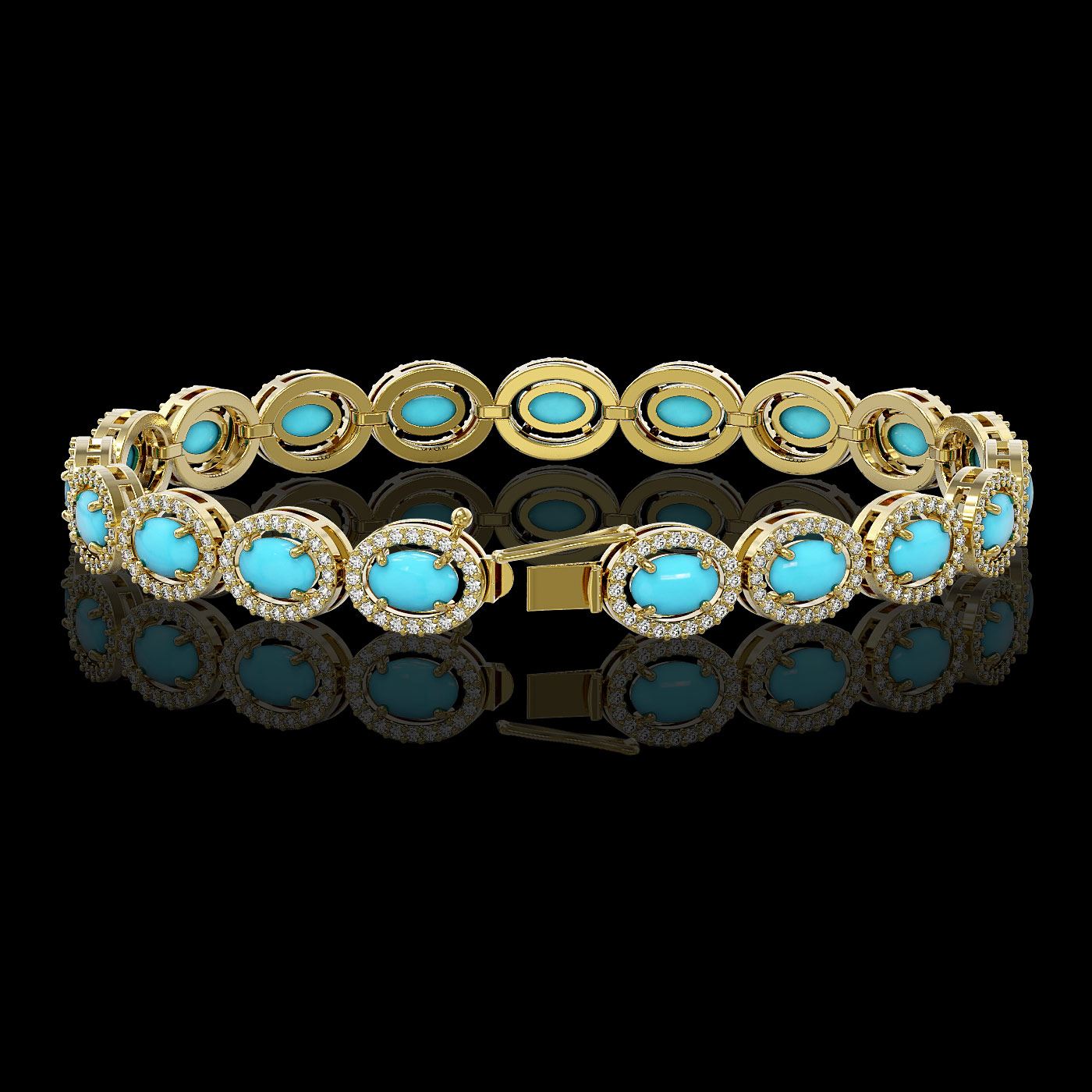 REF-227H8R - SKU: 46000 ---- 11.40 ctw Turquoise & Diamond Micro Pave Halo Bracelet 10k Yellow Gold