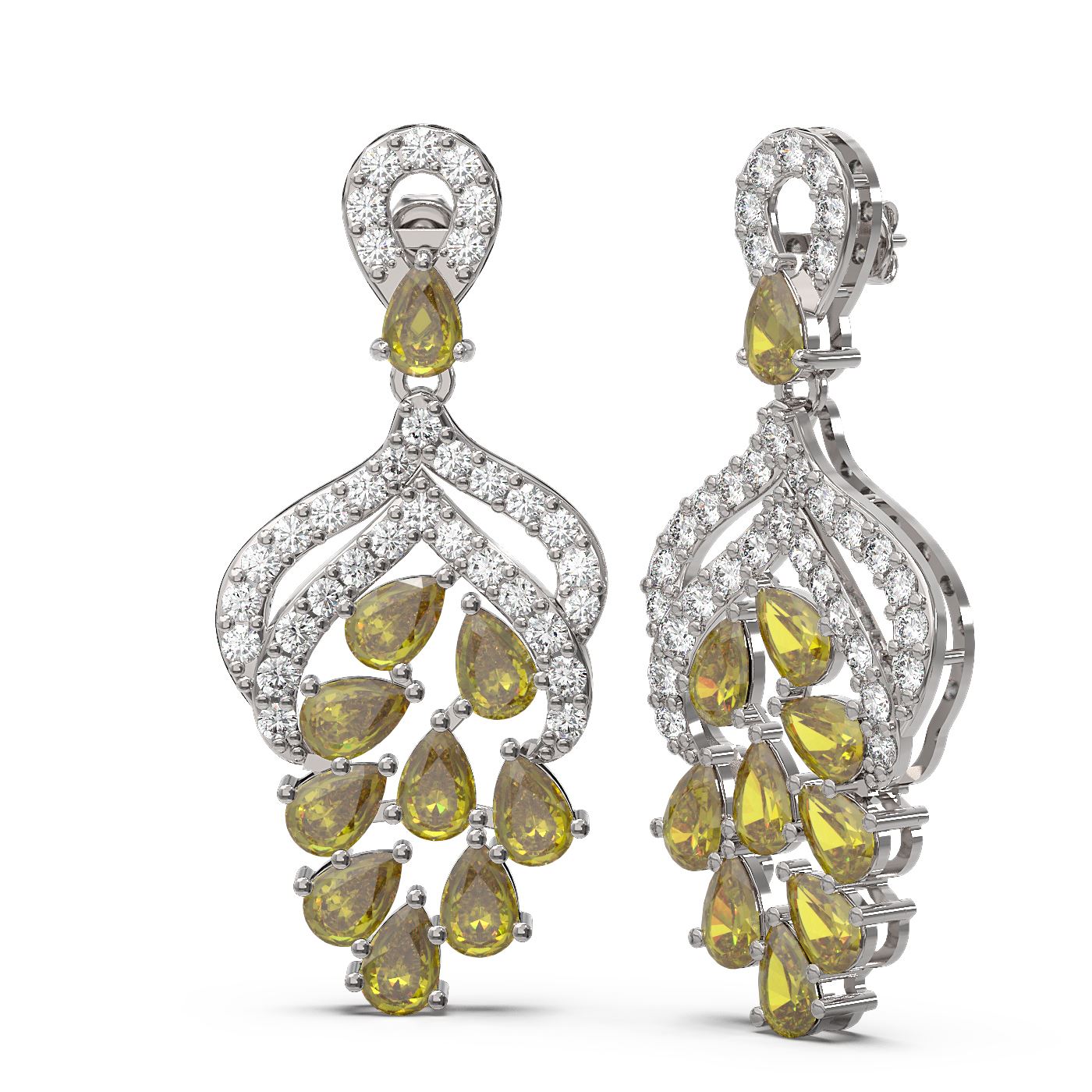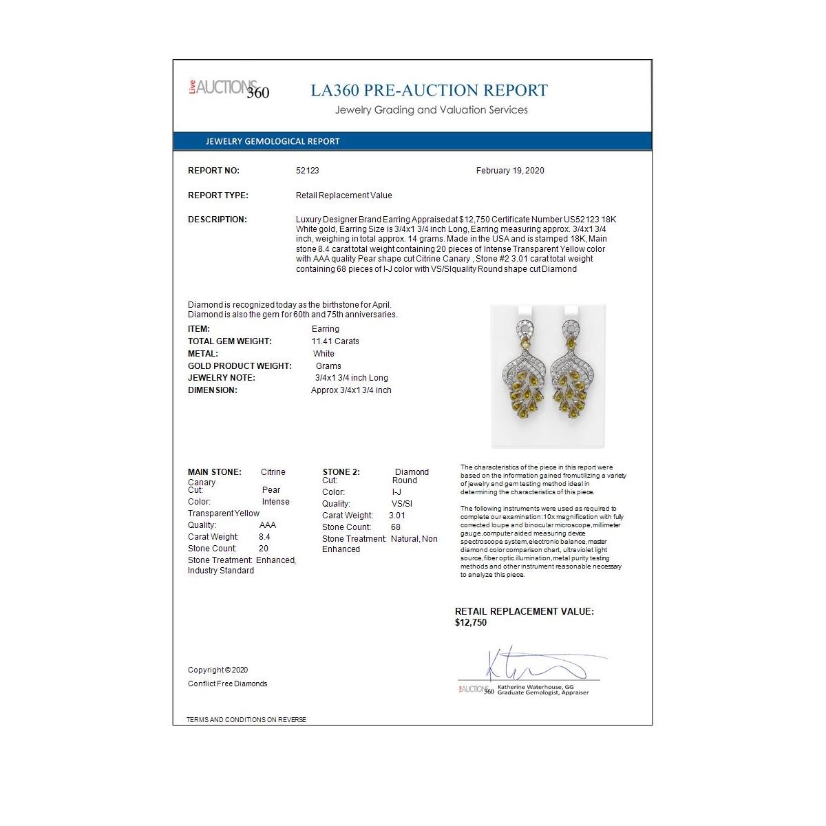 REF-289N8F - SKU: 52123 ---- 11.41 ctw Canary Citrine & Diamond Earrings 18K White Gold