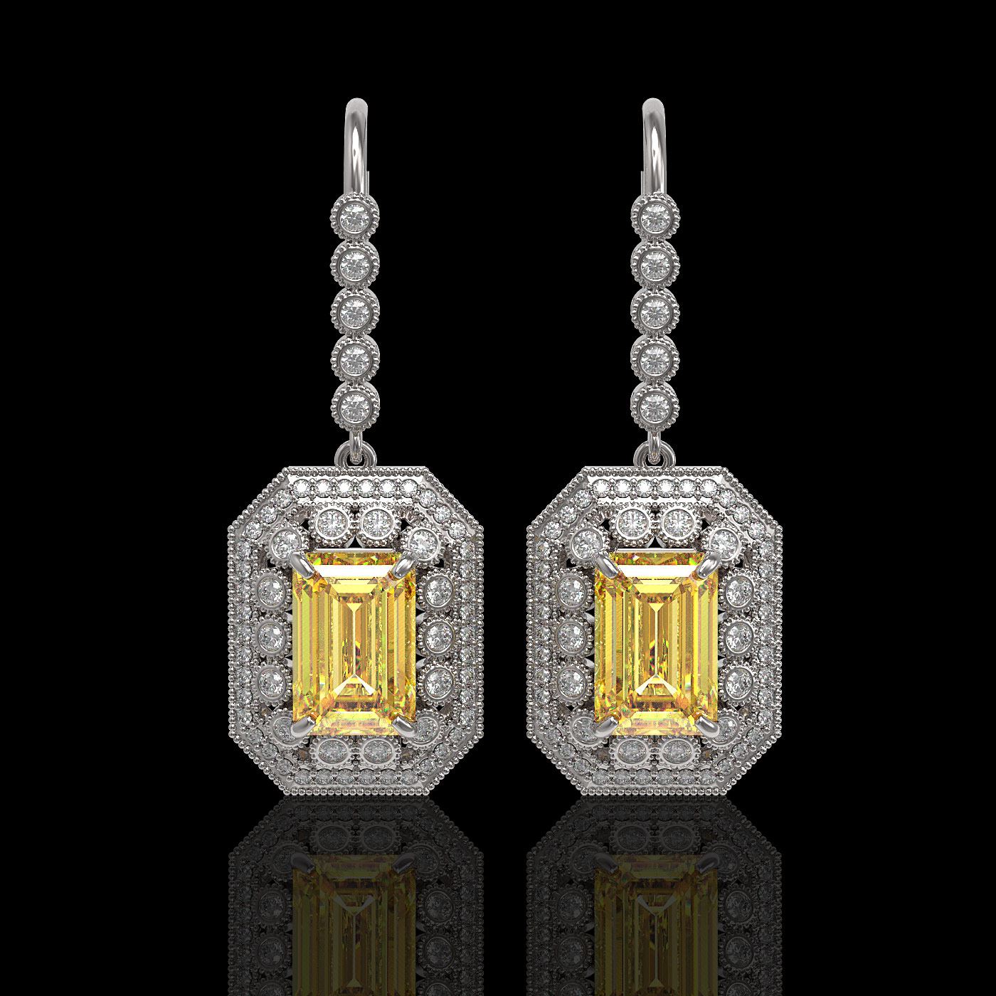 REF-243W5H - SKU: 43403 ---- 11.44 ctw Canary Citrine & Diamond Victorian Earrings 14K White Gold