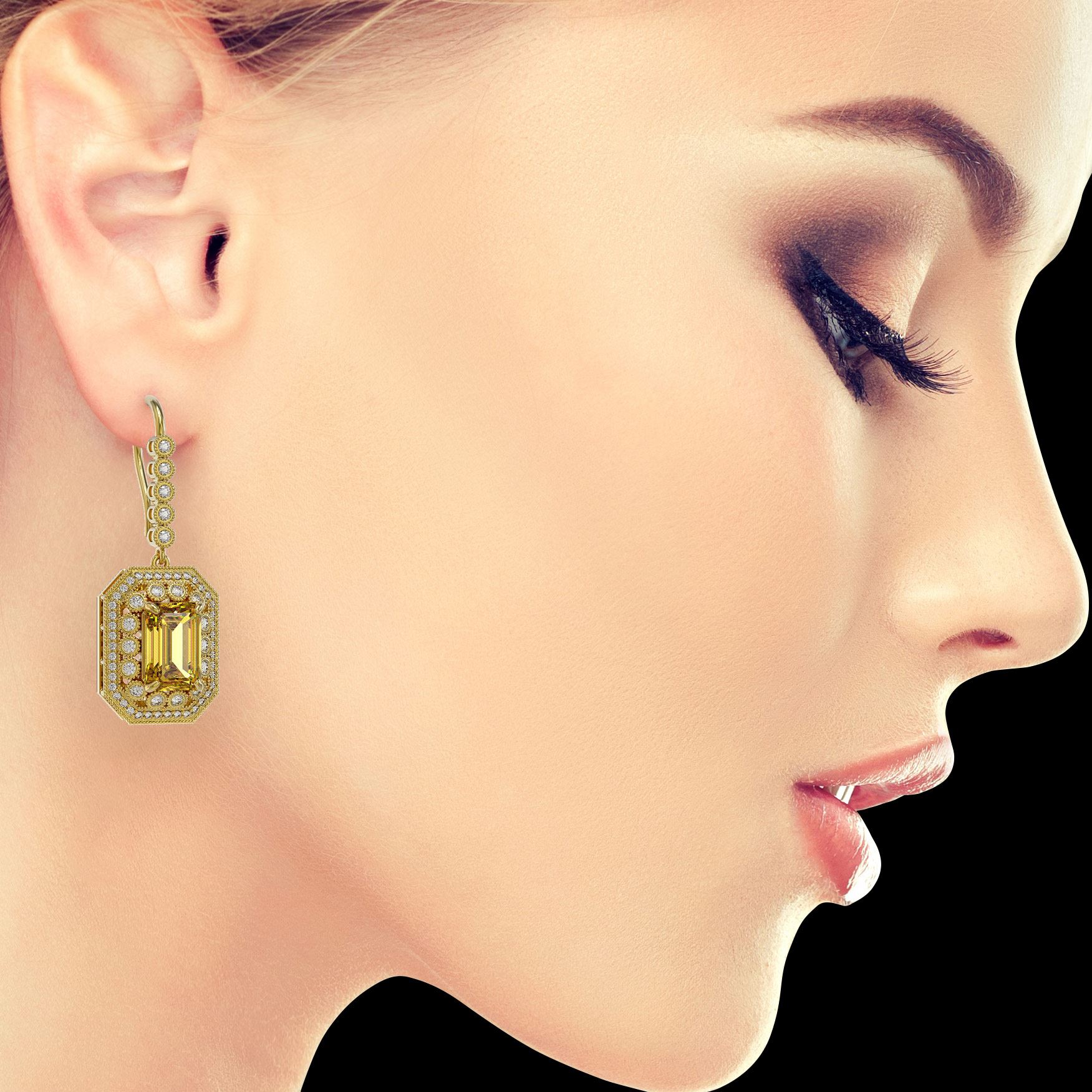 REF-243Y5X - SKU: 43405 ---- 11.44 ctw Canary Citrine & Diamond Victorian Earrings 14K Yellow Gold