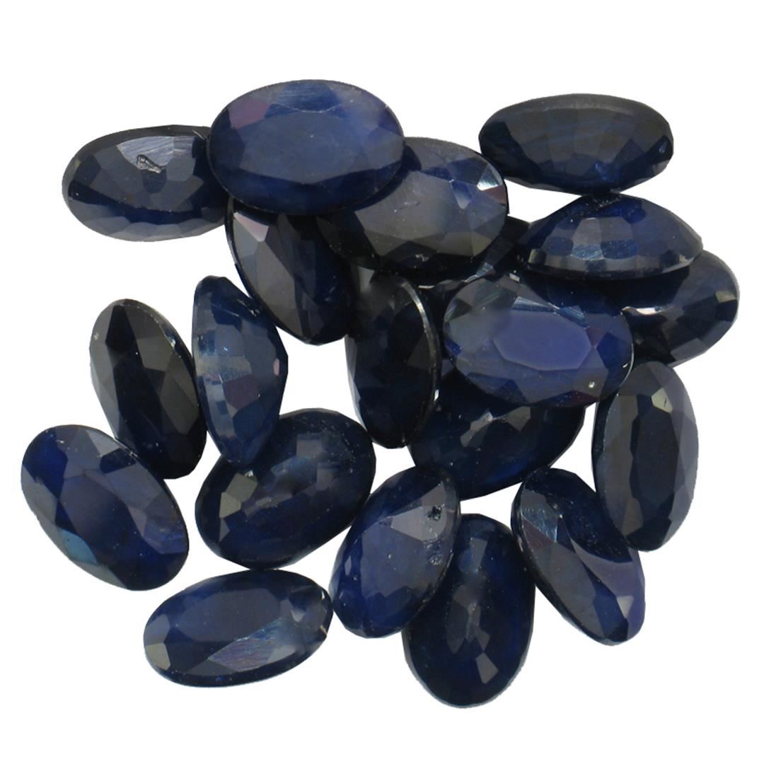 Twenty oval mixed cut natural blue sapphires, measuring 6.00 x 4.00 x 0.00mm, exact total weight 11.45ct., clarity is heavily included, type II, dark, very slightly grayish, blue color, (GIA B 7/3), cut is good. Indications of multiple laboratory enhancements, including high temperature heat treatment. Westfield Appraised at $1,030.00.