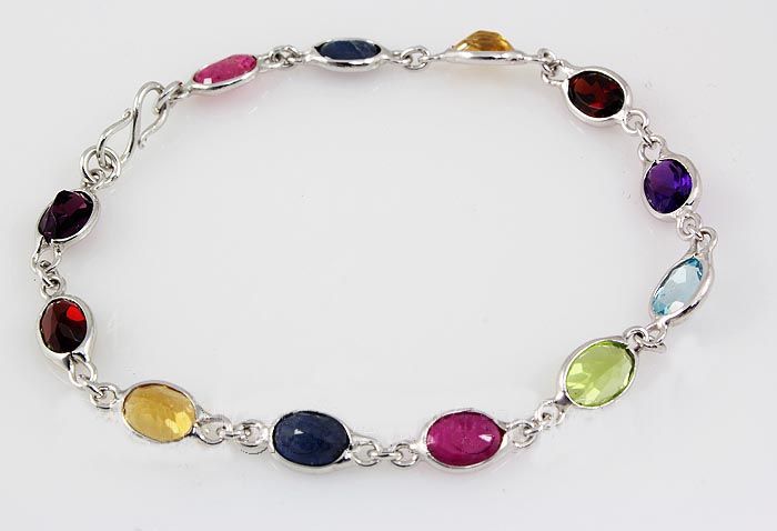 11.47CT Multi Precious Gemstone Silver Bezel Bracelet 2 **|**|** 7.0" Long Natural Multi-color Precious Gemstone in Bezel Design Silver Bracelet; 12pcs 7x5mm ; MSRP: $800
