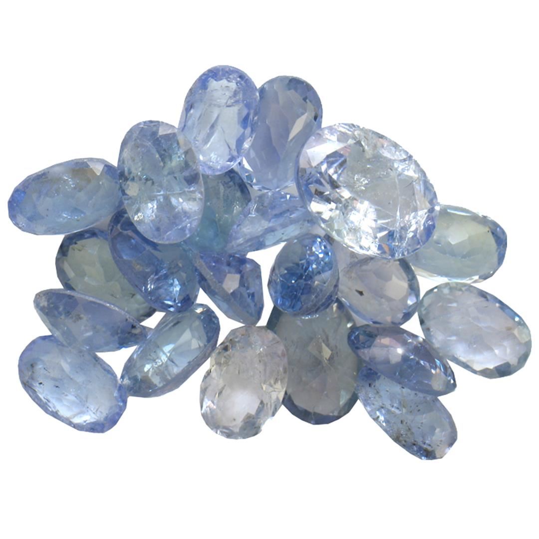 Twenty oval mixed cut natural tanzanites exact total weight 11.48ct., clarity is slightly included, type I, medium dark, very slightly grayish, bluish violet color, (GIA bV 6/3), cut is good. Transmitting light with a minimum of distortion, transparent. Naturally occurring internal & external characteristics are present. Color grade is an average for the group. Tanzanite is a very rare gemstone that is only found in the country of Tanzania. Originally discovered in 1967. Tiffany & Company, named the stone Tanzanite. It is found in the Usumburu Mountains that border the Umba Valley of northern Tanzania. Tanzanite occurs in gray, brown, violet, blue, reddish-purple, & green. The gem is interesting because of its exceptional pleochroism. Rotated in different directions a tanzanite will exhibit multiple changes of color. Tanzanite has a low tolerance to ultrasonic cleaning, and should not be cleaned using this method. Westfield Appraised at $1,105.00.
