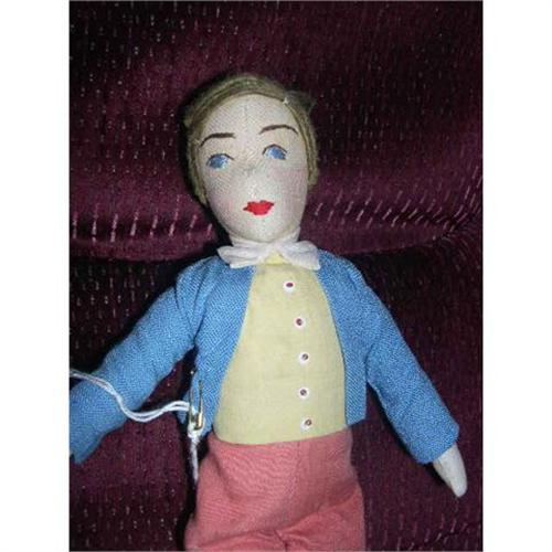 11.5" Cloth Man With Stitched Features. He appears to be homemade and made nicely. I'm not sure when this would have been made. I believe he is cotton stuffed. He is nice and clean. He has a few holes in his pants. Doll comes from a smoke free environment. Buyer to pay $10 for shipping, handling, and insurance. Thanks for viewing.