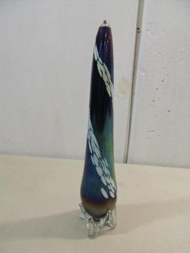 11.5"H MT ST HELENS IRIDESCENT ASH GLASS OIL CANDLE. HAS MAKER MARK. AS SHOWN. VIEW PICTURE FOR DETAIL.