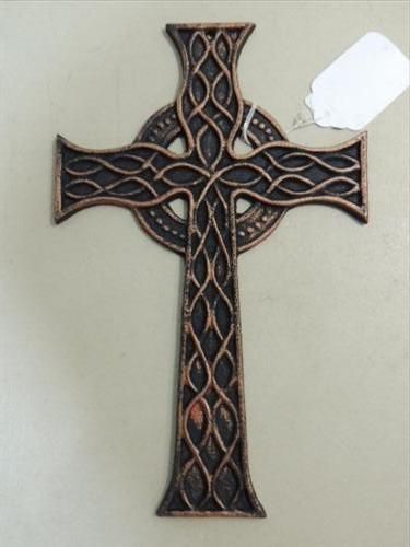 11.5"L COPPER & BLACK TONE DIE CAST IRON CROSS. AS SHOWN. VIEW PICTURE FOR DETAIL.