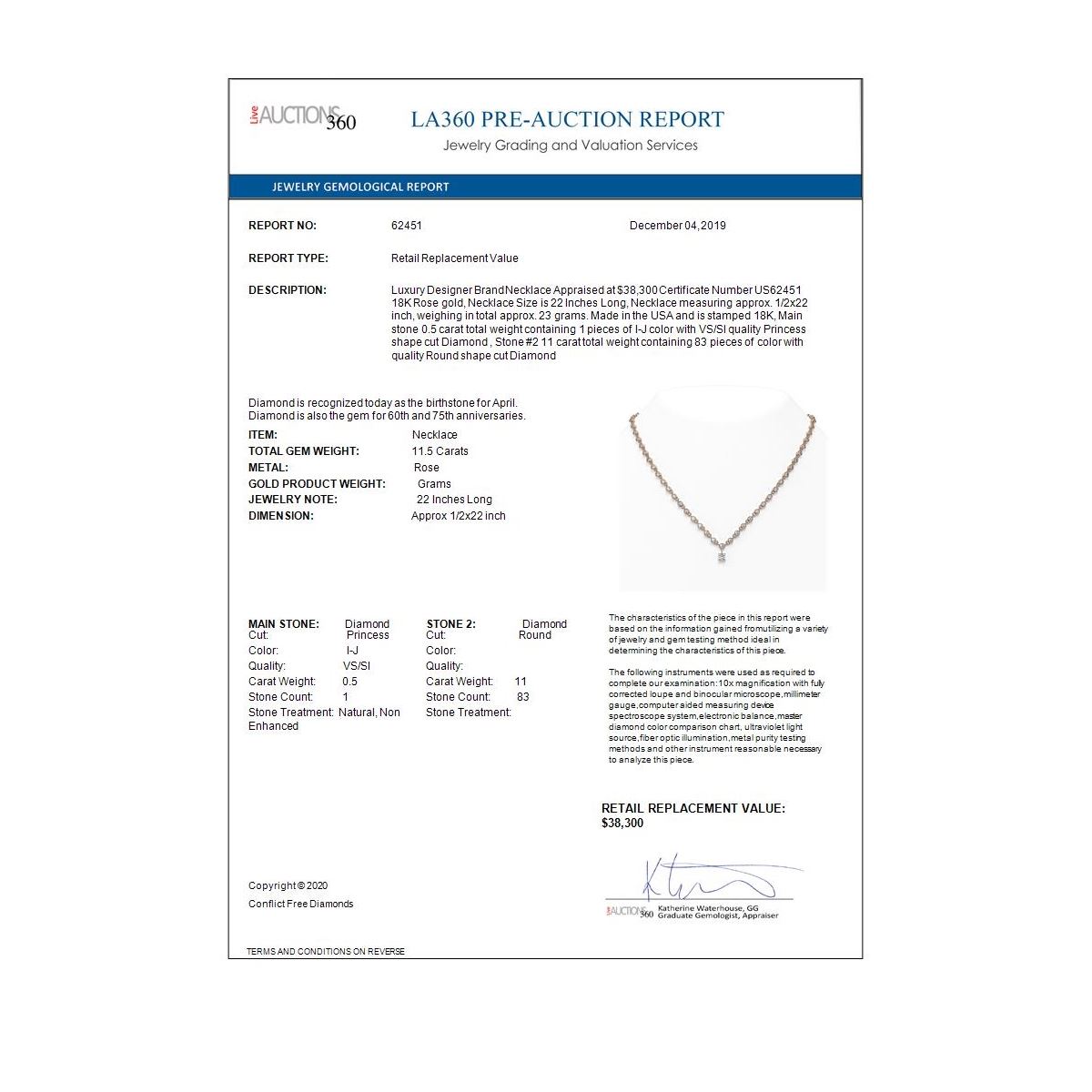 REF-870Y2X - SKU: 62451 ---- 11.5 ctw Princess Cut Diamond Designer Necklace 18K Rose Gold