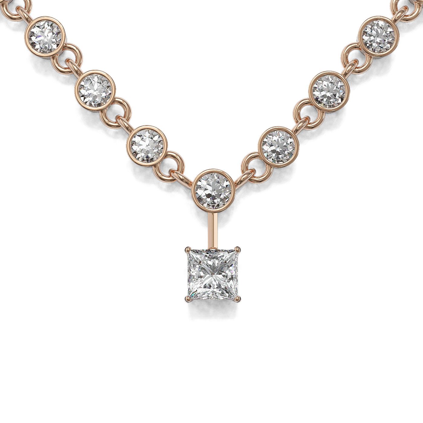 11.5 ctw Princess Cut Diamond Designer Necklace 18K Rose Gold