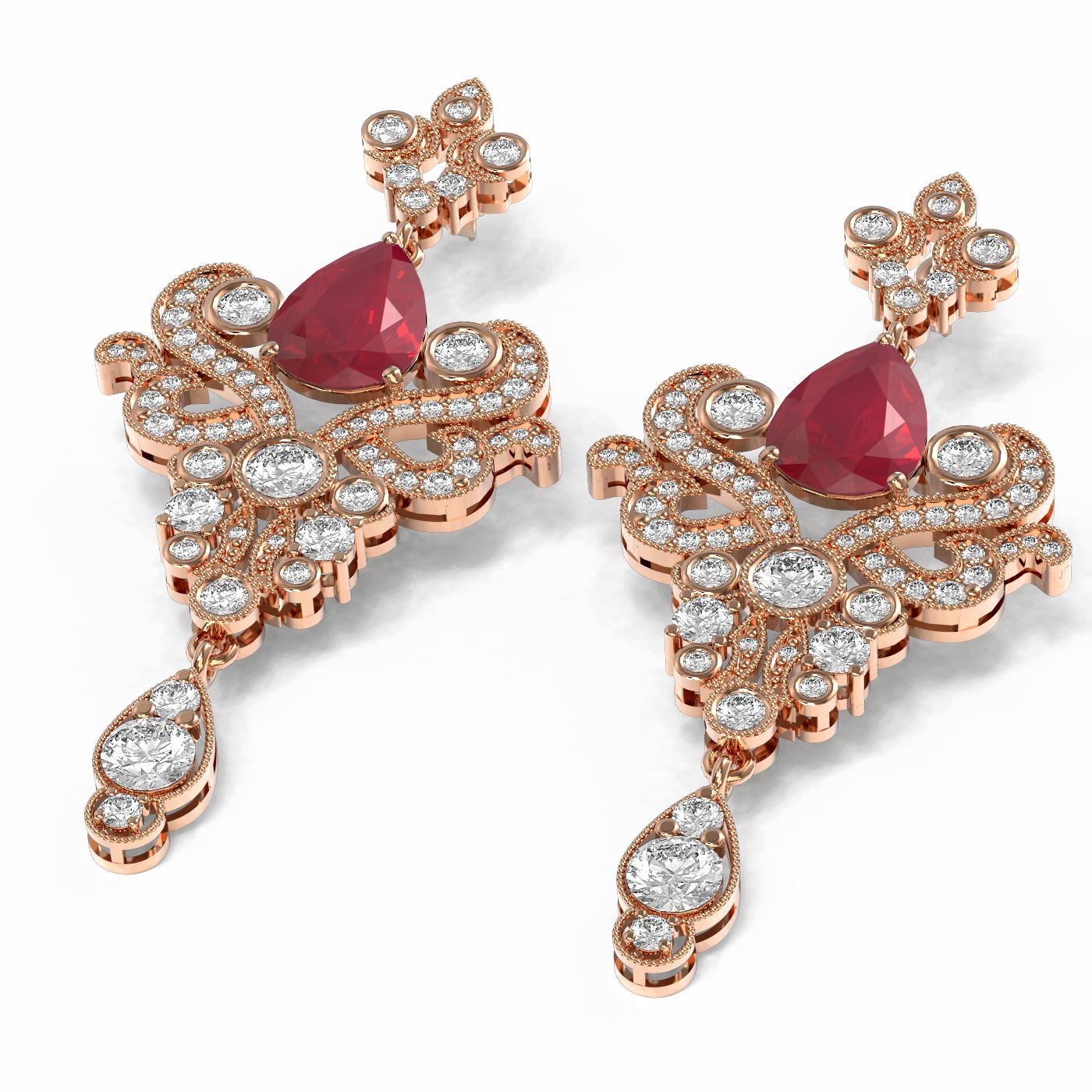 SKU: 56511 ---- 11.5 ctw Ruby & Diamond Earrings 18K Rose Gold