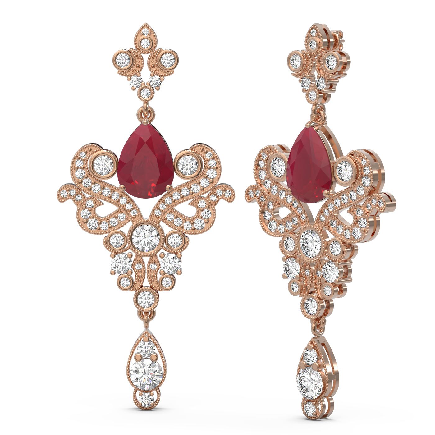 SKU: 56511 ---- 11.5 ctw Ruby & Diamond Earrings 18K Rose Gold