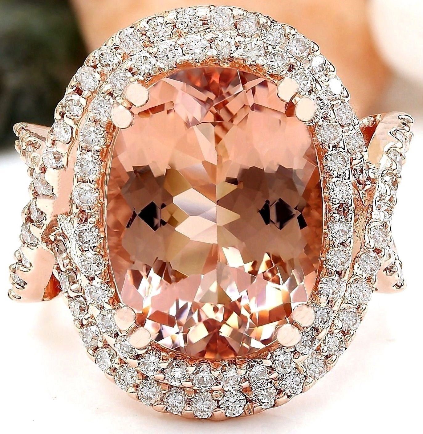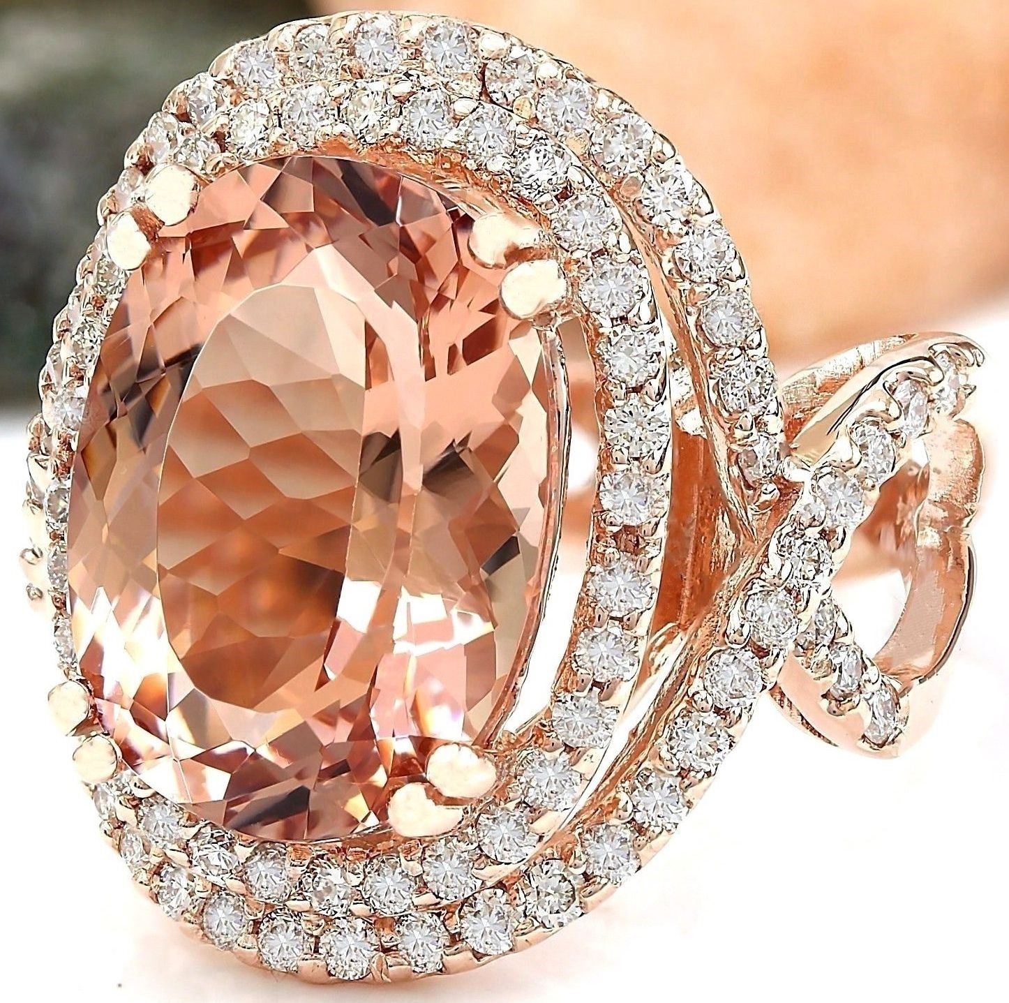 11.51 Carat Natural Morganite 14K Solid Rose Gold Diamond Ring